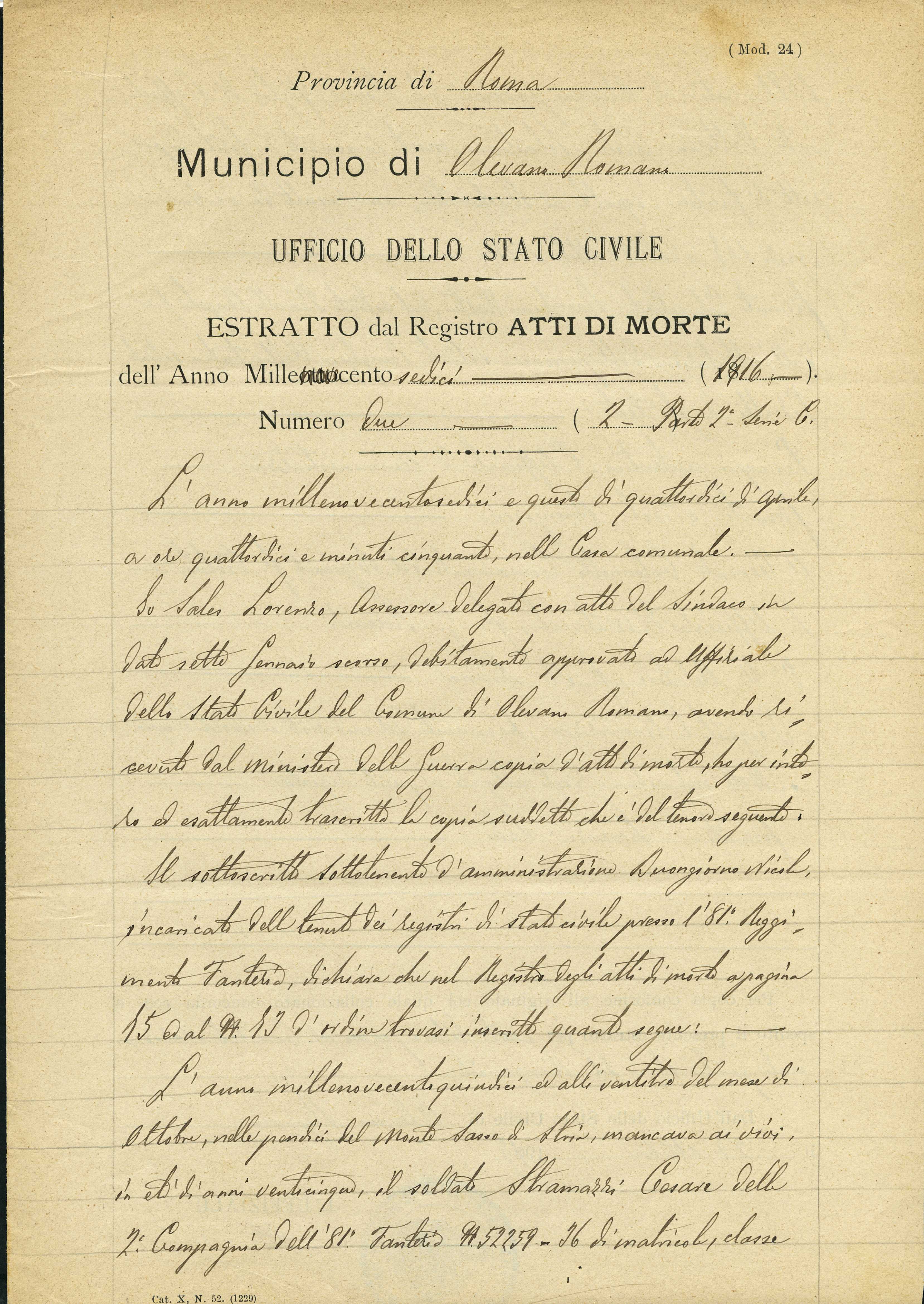 Documento: Stramazzi Cesare, Olevano Romano (Roma)