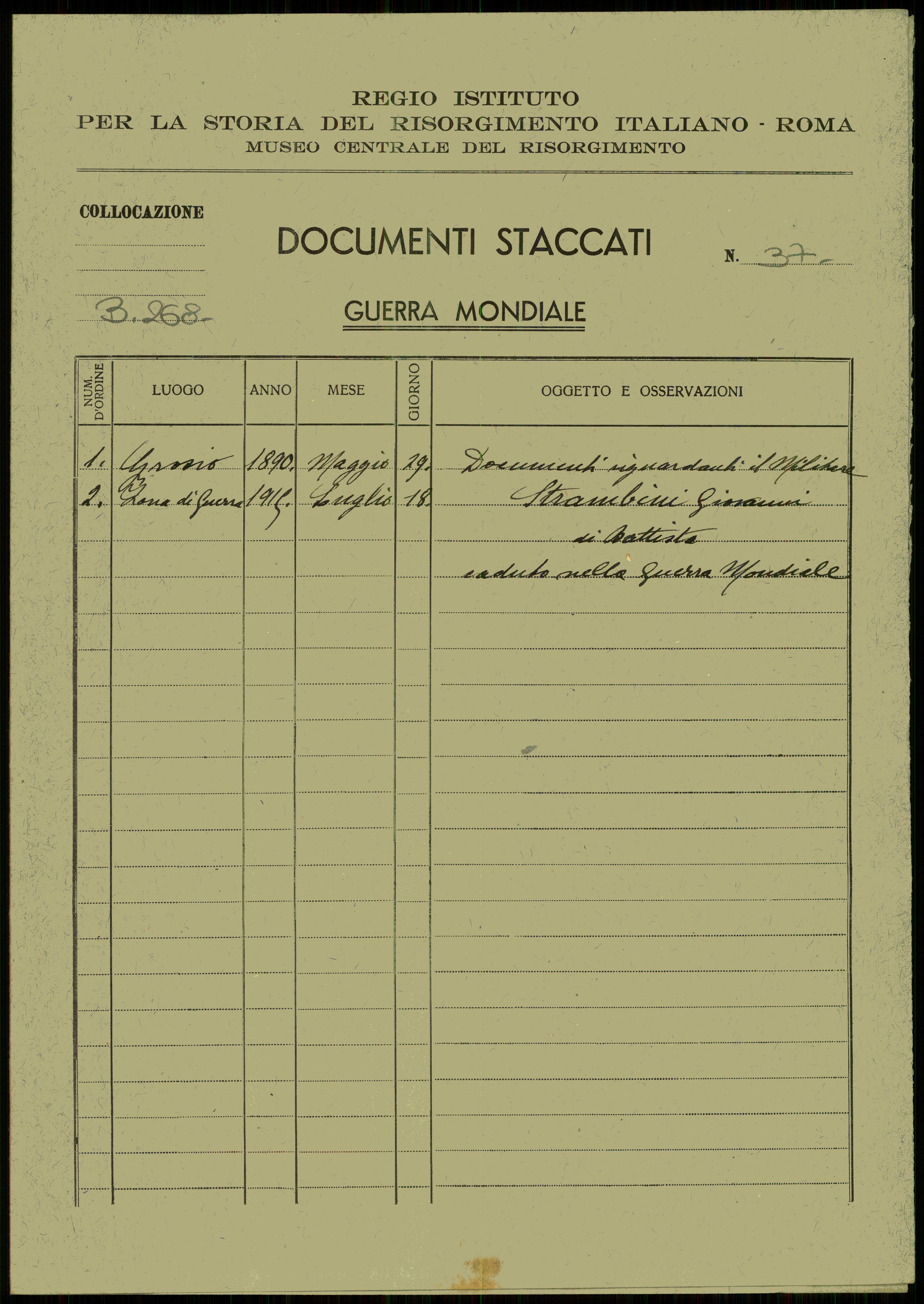 Percorso: Istituto per la Storia del Risorgimento Italian.../Fondo caduti prima guerra mondiale/Storace Attilio - Struzzini Ernesto/Strambini Giovanni, Grosio (Sondrio)