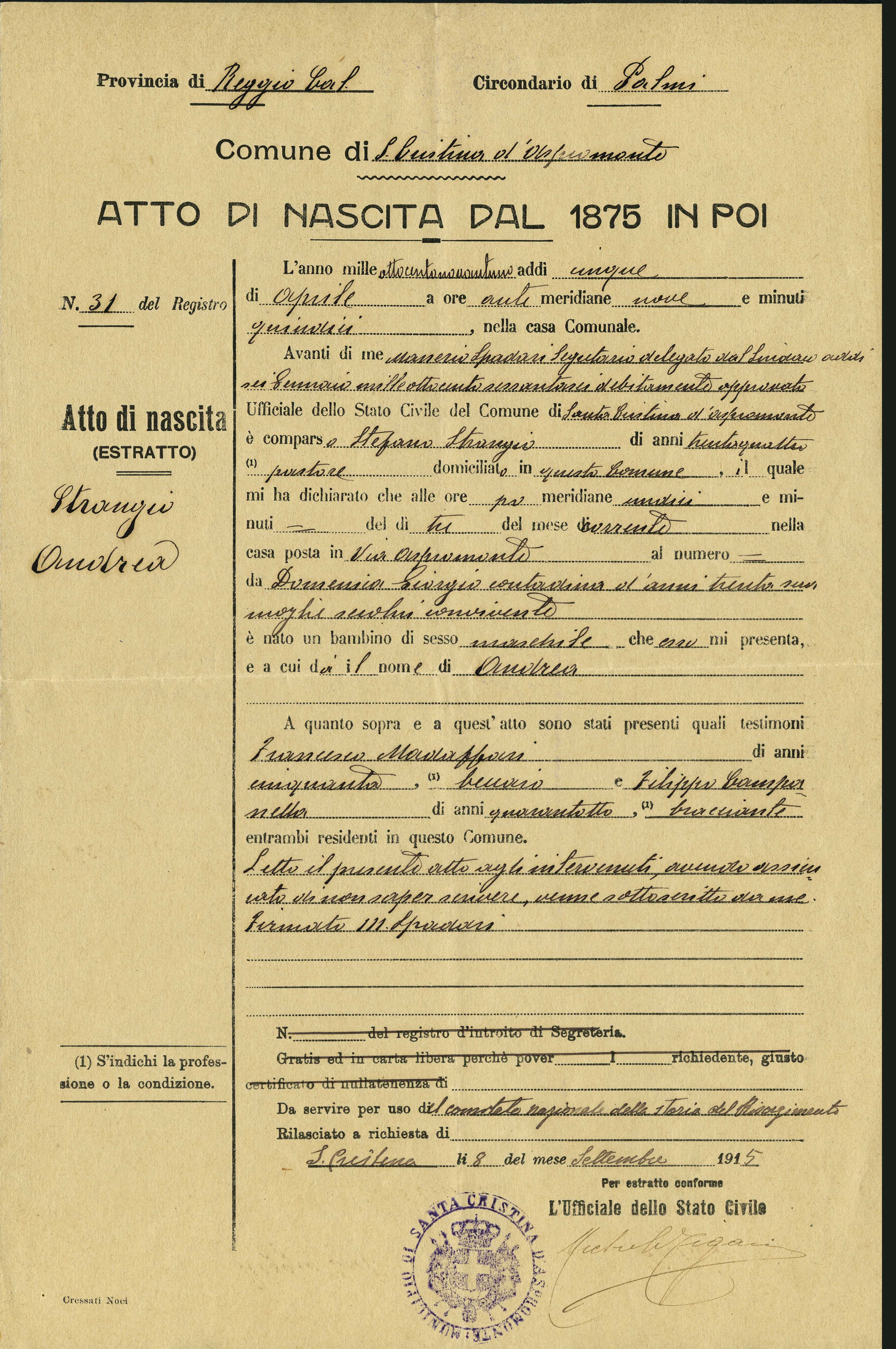 | Percorso: Istituto per la Storia del Risorgimento Italian.../Fondo caduti prima guerra mondiale/Storace Attilio - Struzzini Ernesto/Strangio Andrea, S. Cristina d'Aspromonte (Regg... | |||||||||||