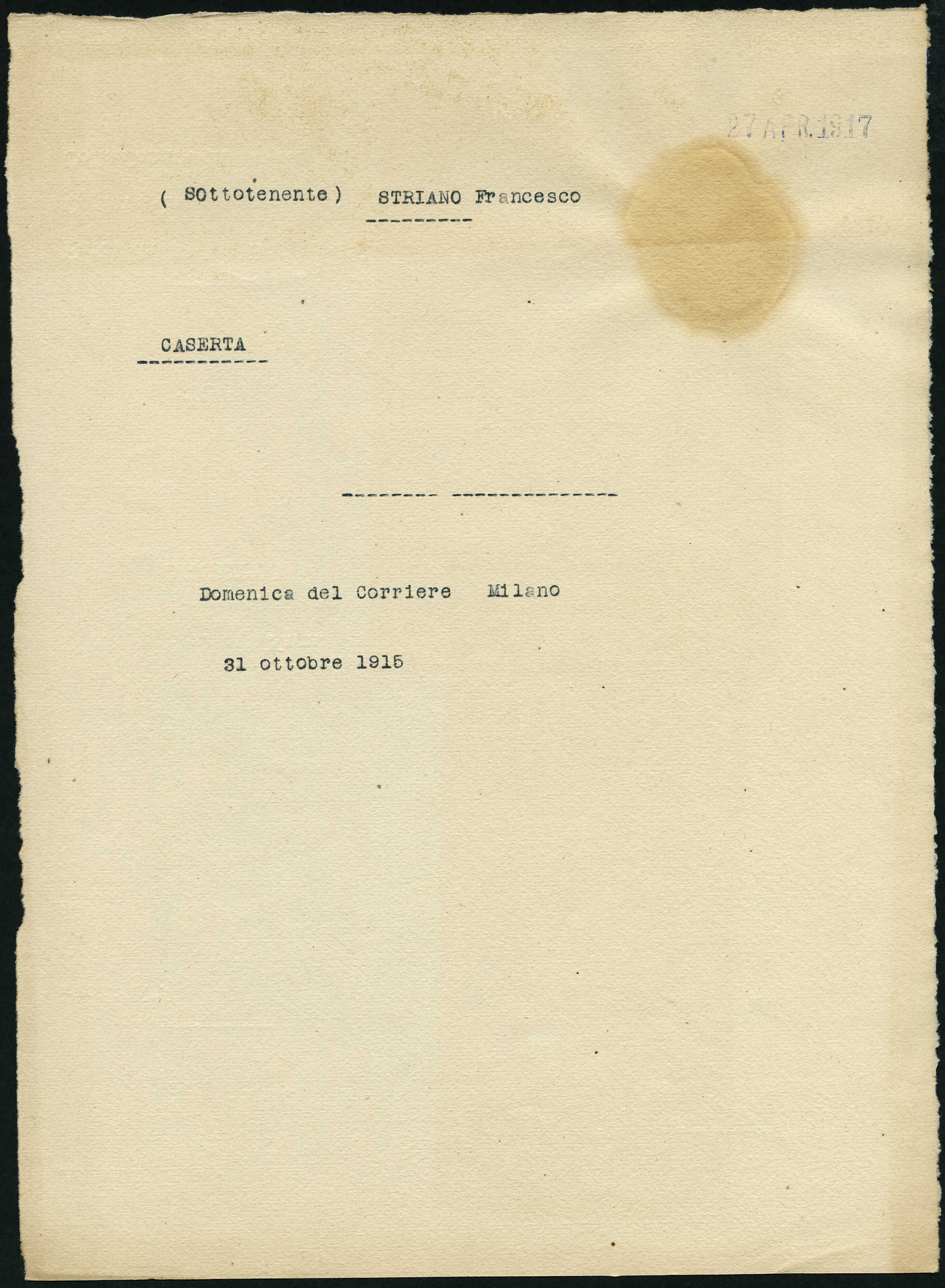 Istituto per la Storia del Risorgimento Italian.../Fondo caduti prima guerra mondiale/Storace Attilio - Struzzini Ernesto/Striano Francesco, Caserta