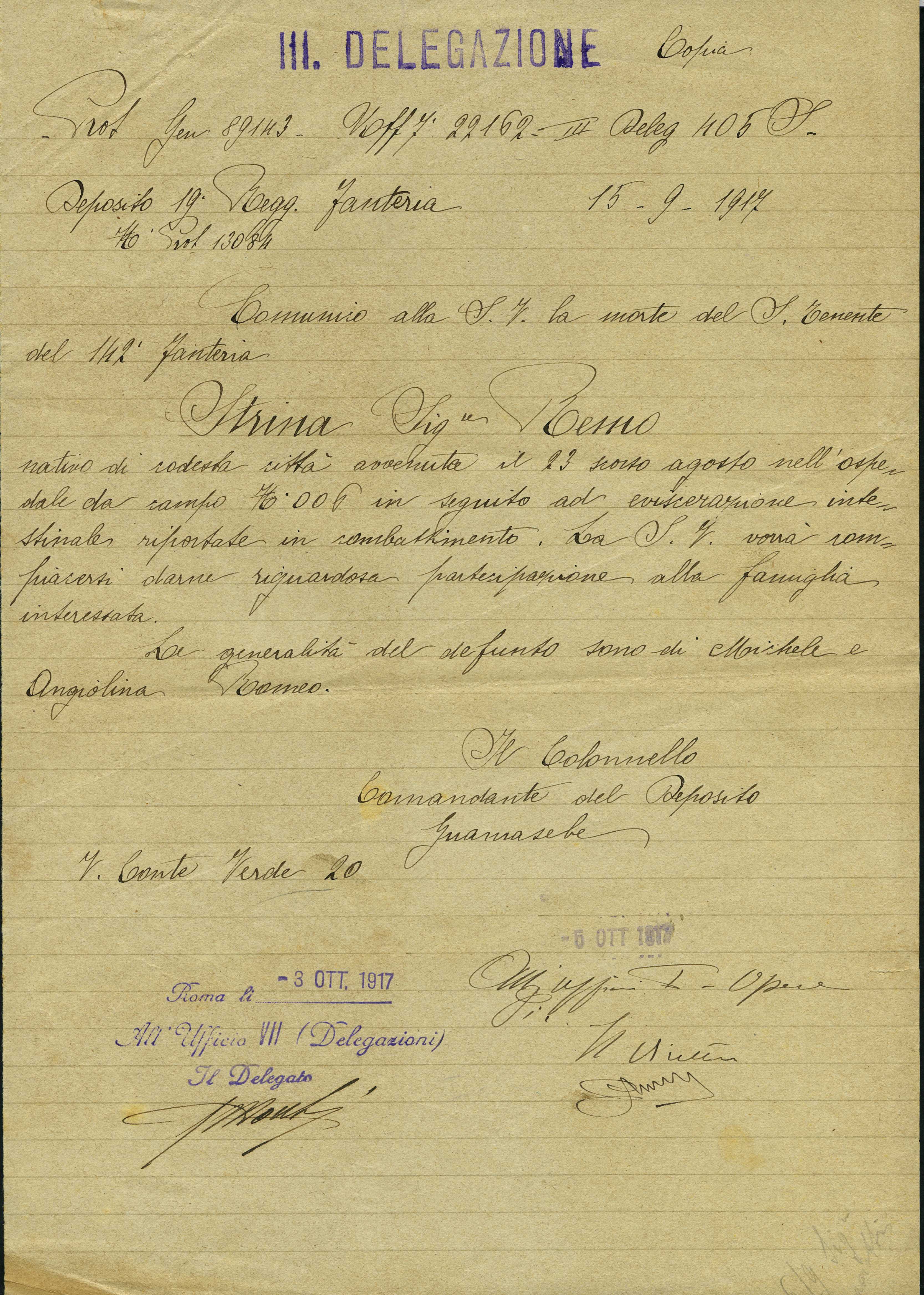 Istituto per la Storia del Risorgimento Italian.../Fondo caduti prima guerra mondiale/Storace Attilio - Struzzini Ernesto/Strina Remo, Roma