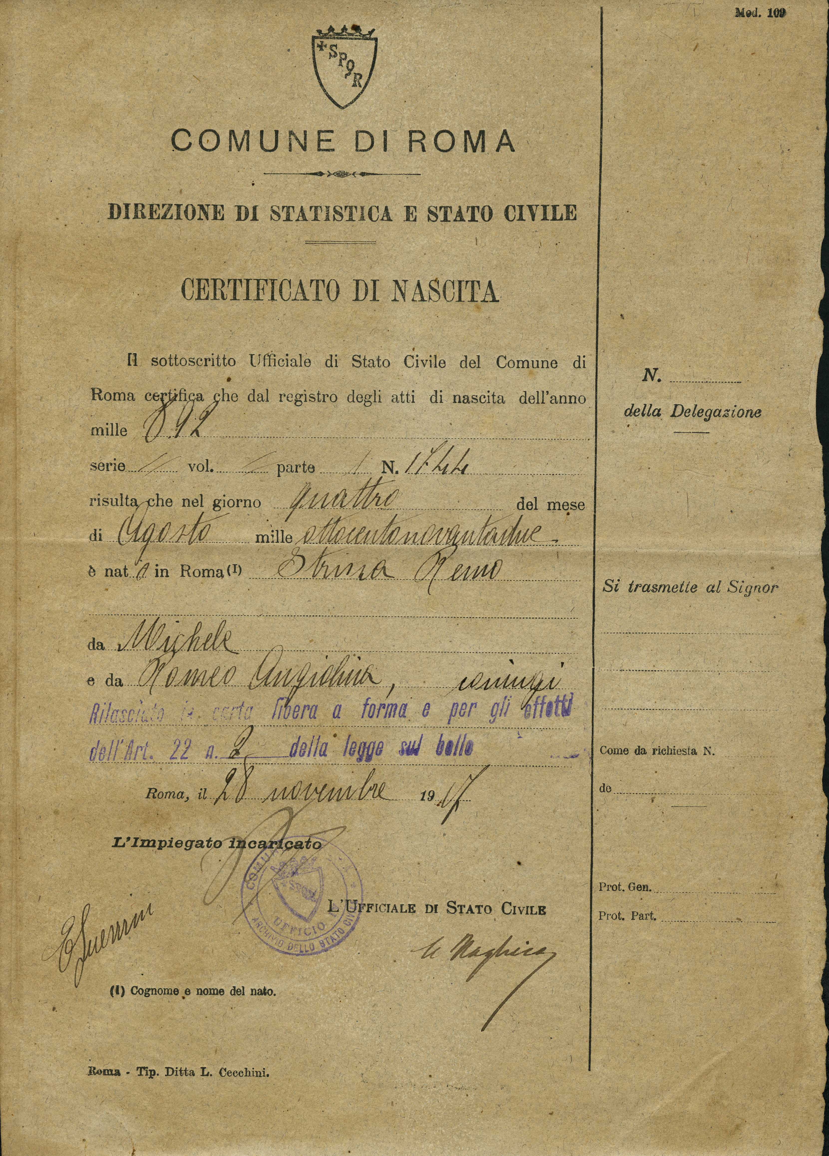 Istituto per la Storia del Risorgimento Italian.../Fondo caduti prima guerra mondiale/Storace Attilio - Struzzini Ernesto/Strina Remo, Roma