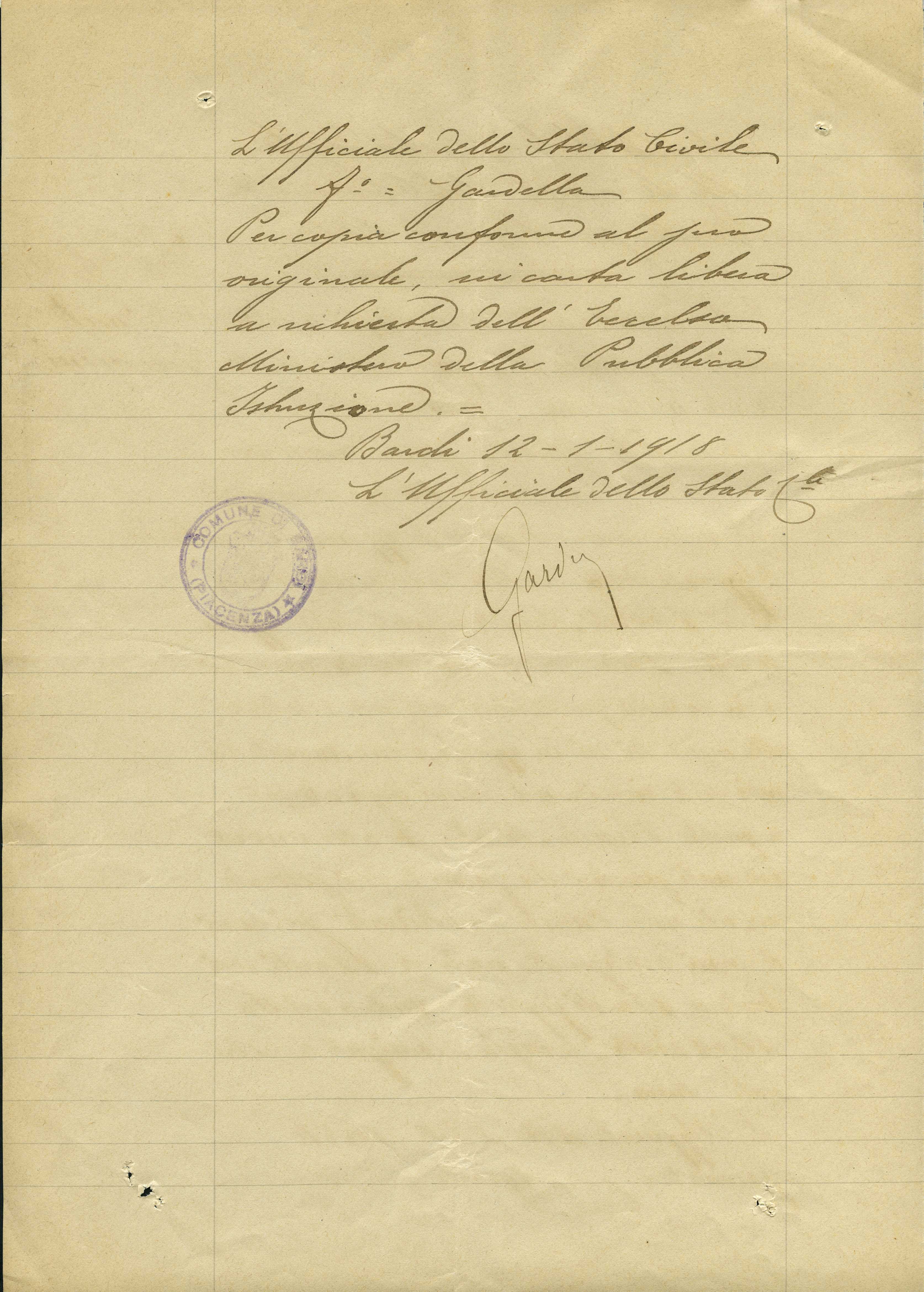 Documento: Strinati Giovanni, Bardi (Piacenza)