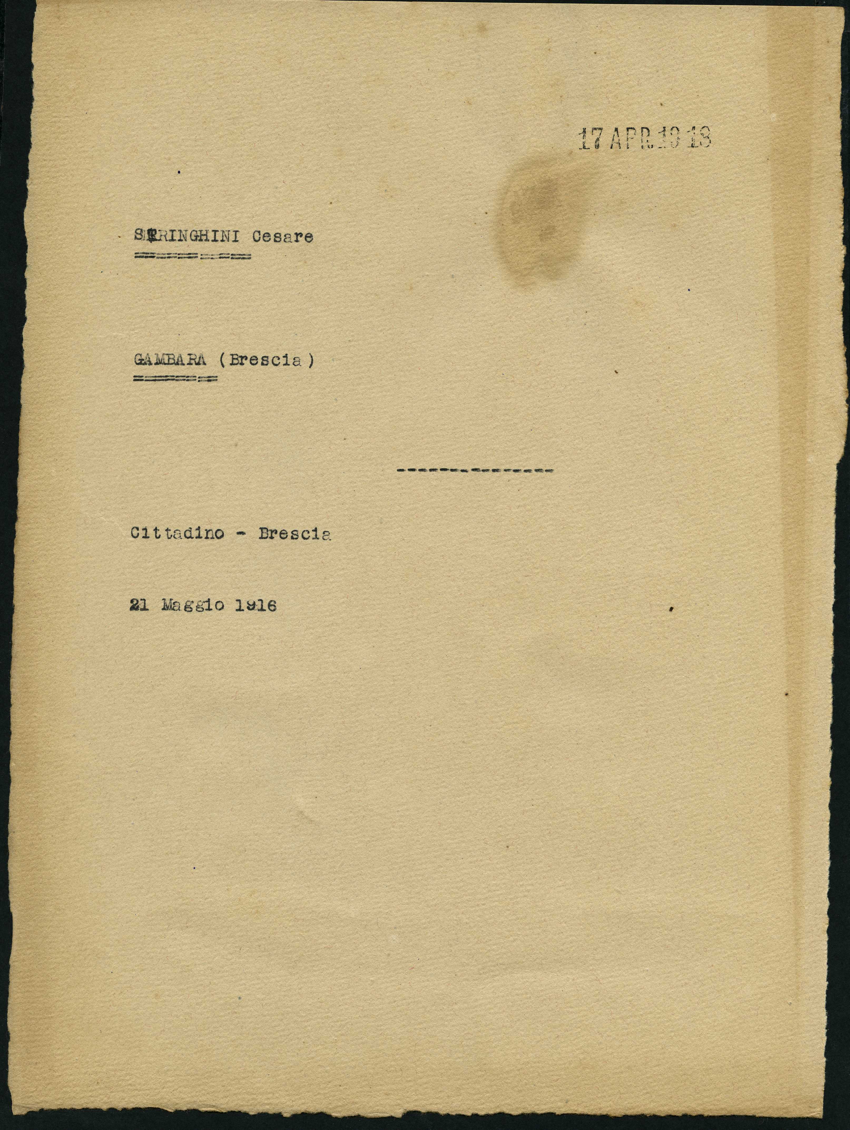 Documento: Stringhini Cesare, Gambara (Brescia)