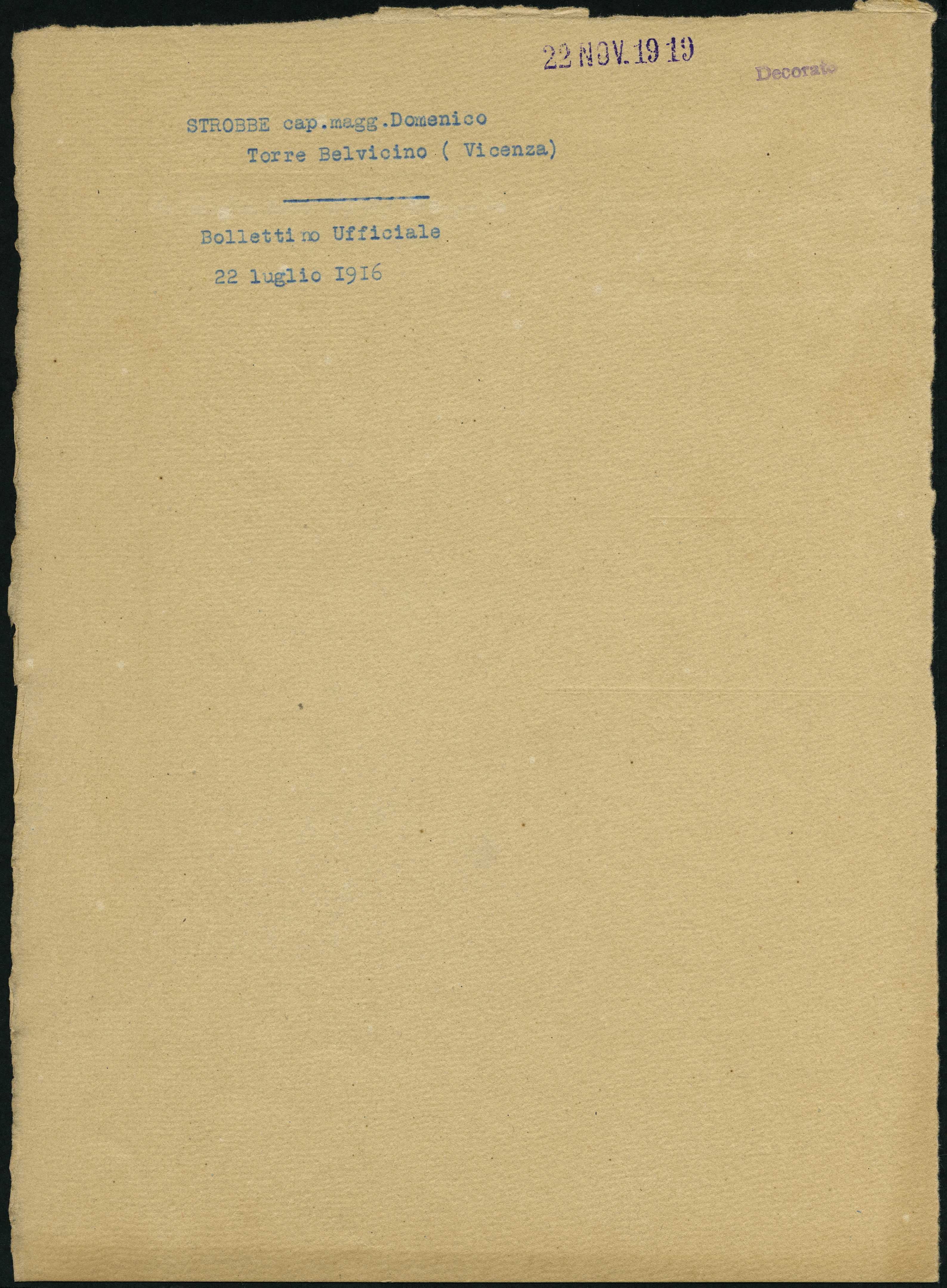 Documento: Strobbe Domenico, Torre Belvicino (Vicenza)