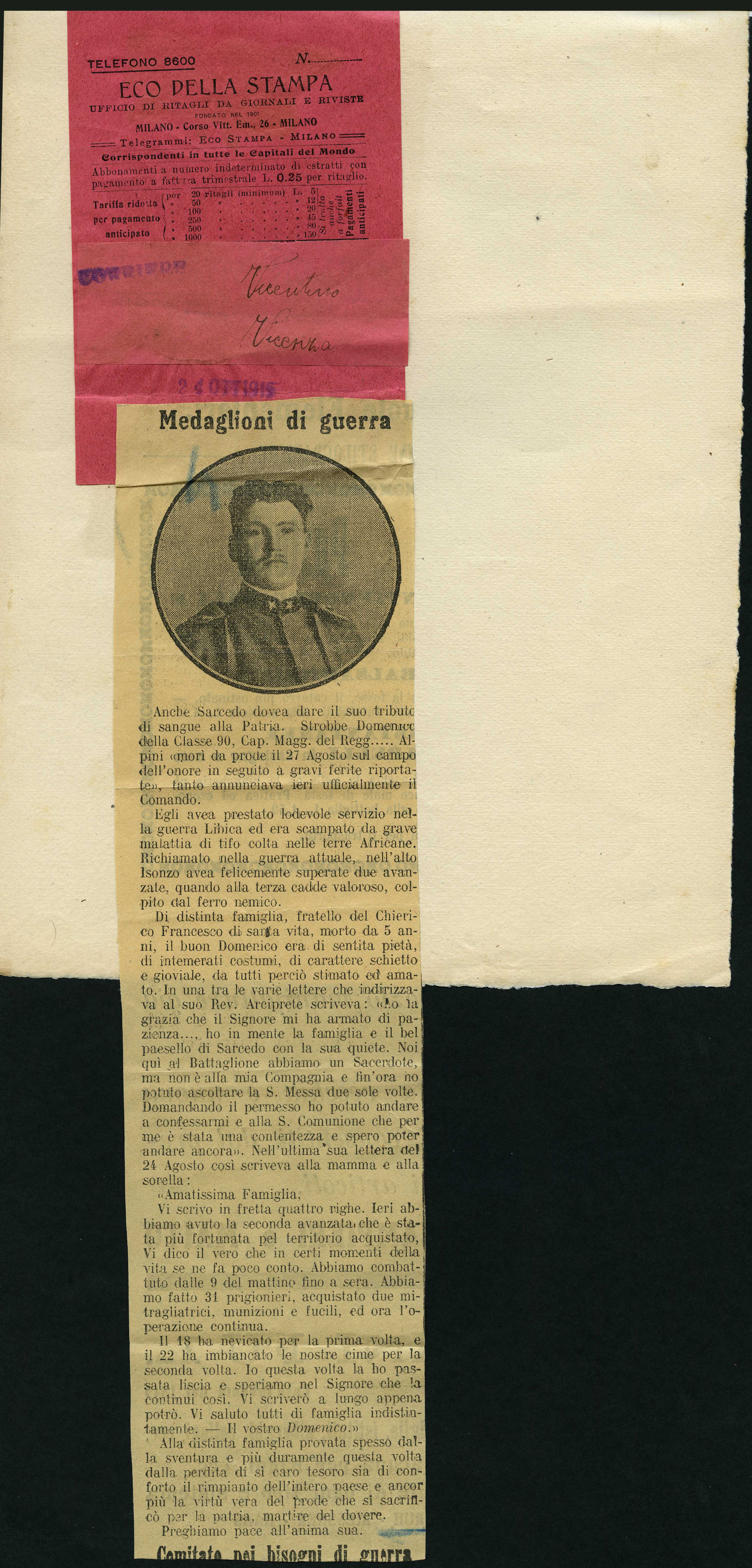 | Percorso: Istituto per la Storia del Risorgimento Italian.../Fondo caduti prima guerra mondiale/Storace Attilio - Struzzini Ernesto/Strobbe Domenico, Sarcedo (Vicenza) | |||||||||||
