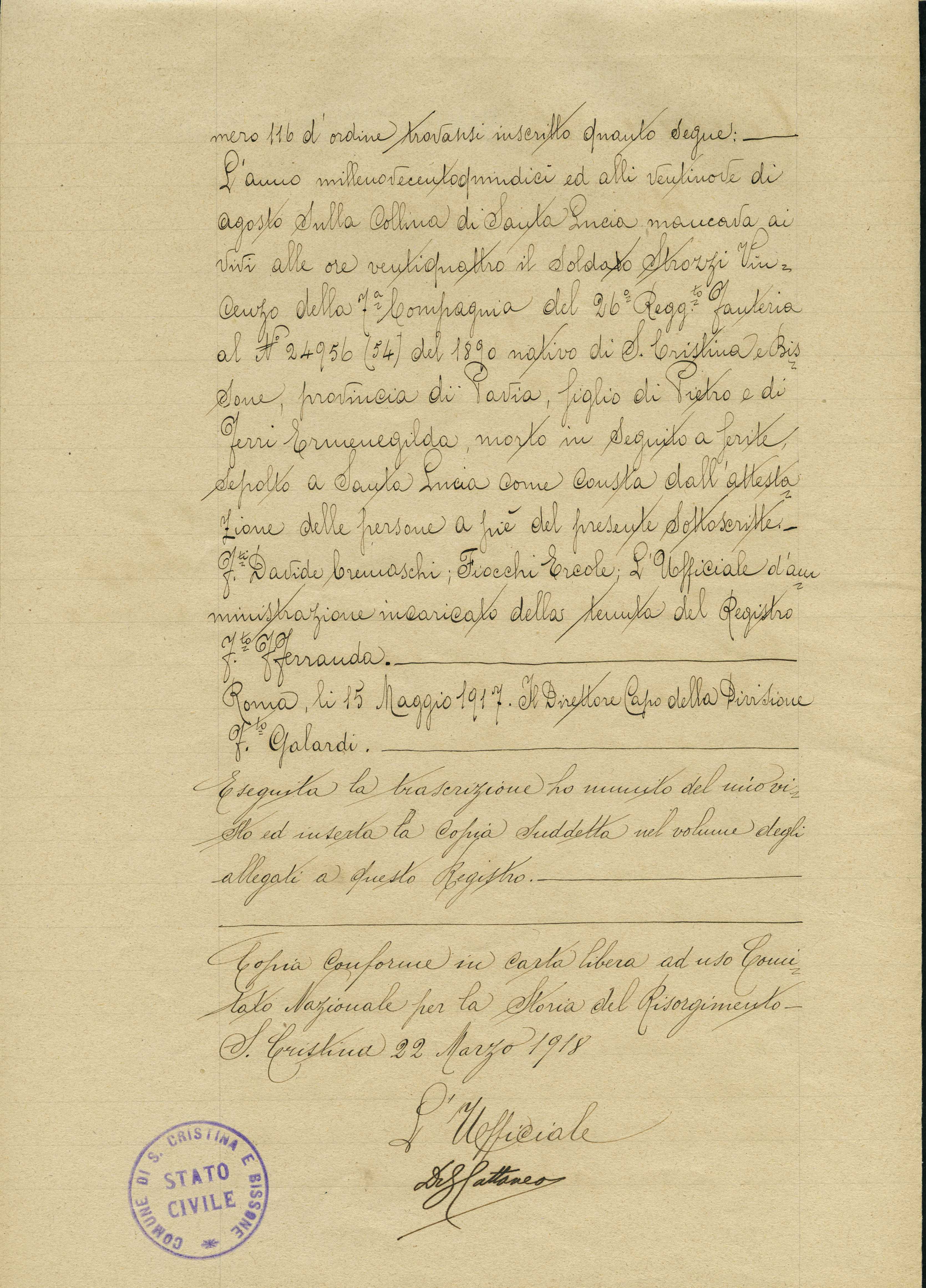 Percorso: Istituto per la Storia del Risorgimento Italian.../Fondo caduti prima guerra mondiale/Storace Attilio - Struzzini Ernesto/Strozzi Vincenzo, Santa Cristina e Bissone (Pavia)