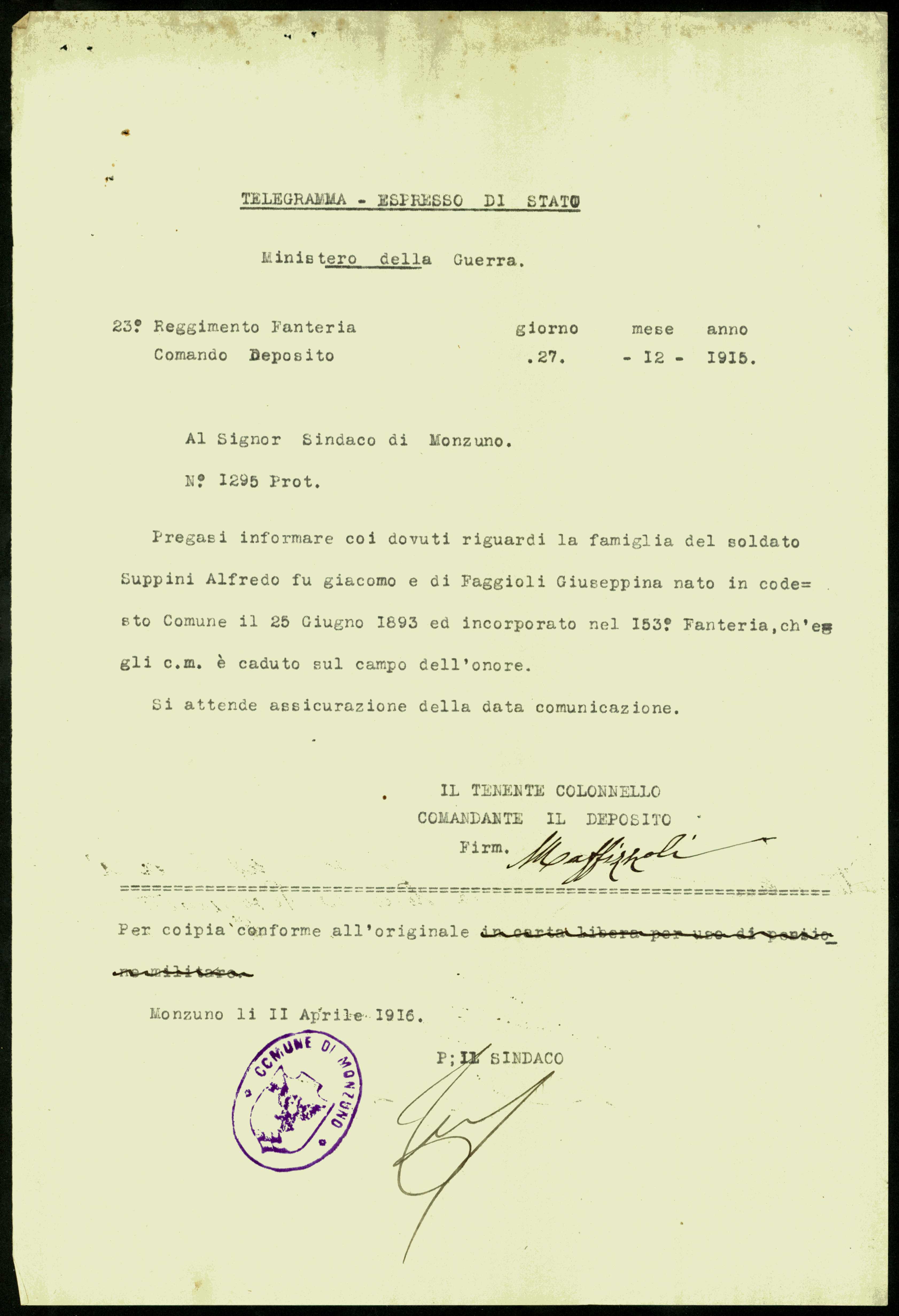 Istituto per la Storia del Risorgimento Italian.../Fondo caduti prima guerra mondiale/Stuardi Michele - Sverzut Augusto/Suppini Alfredo, Monzuno (Bologna)