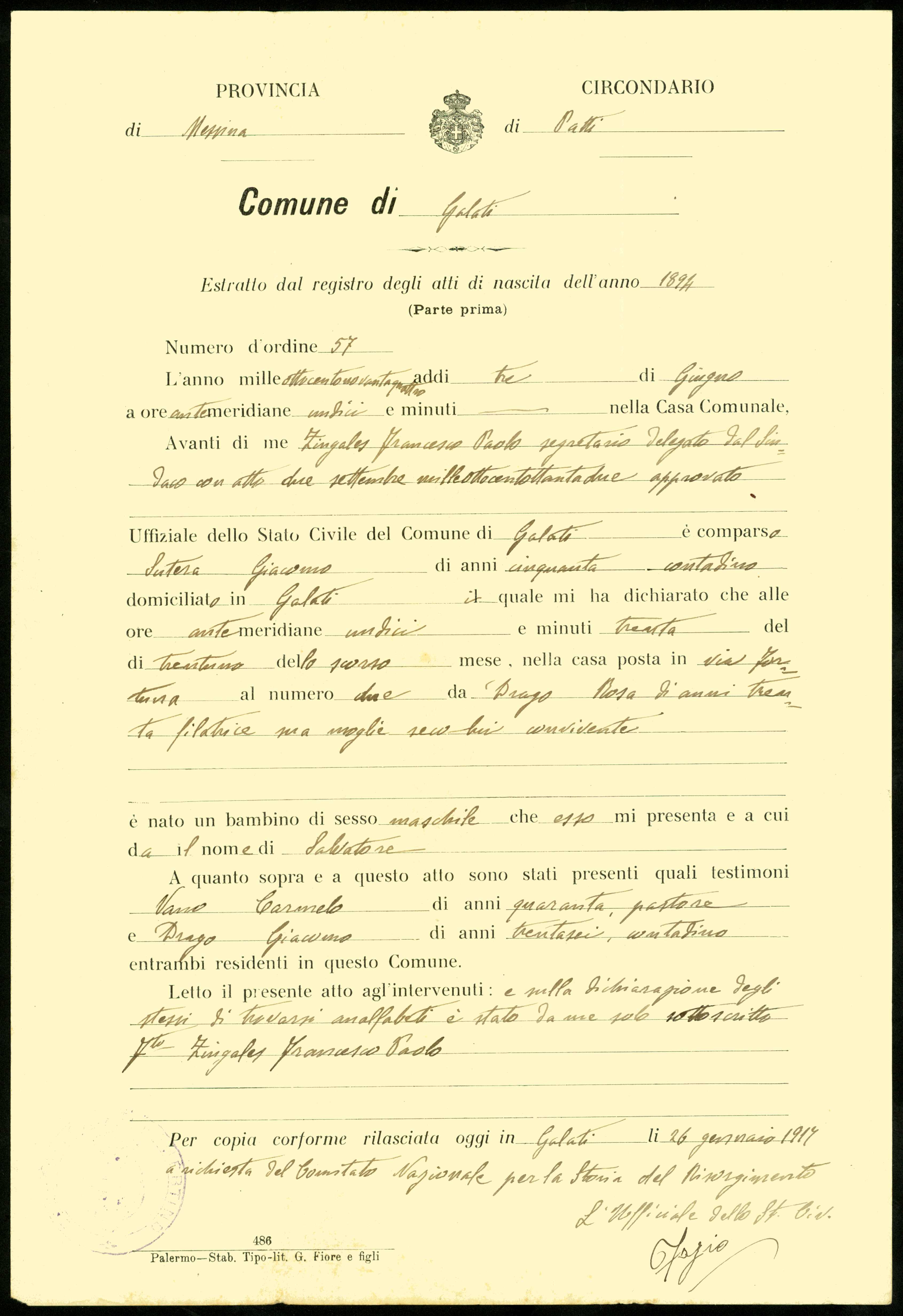 Istituto per la Storia del Risorgimento Italian.../Fondo caduti prima guerra mondiale/Stuardi Michele - Sverzut Augusto/Sutera Salvatore, Galati (Messina)