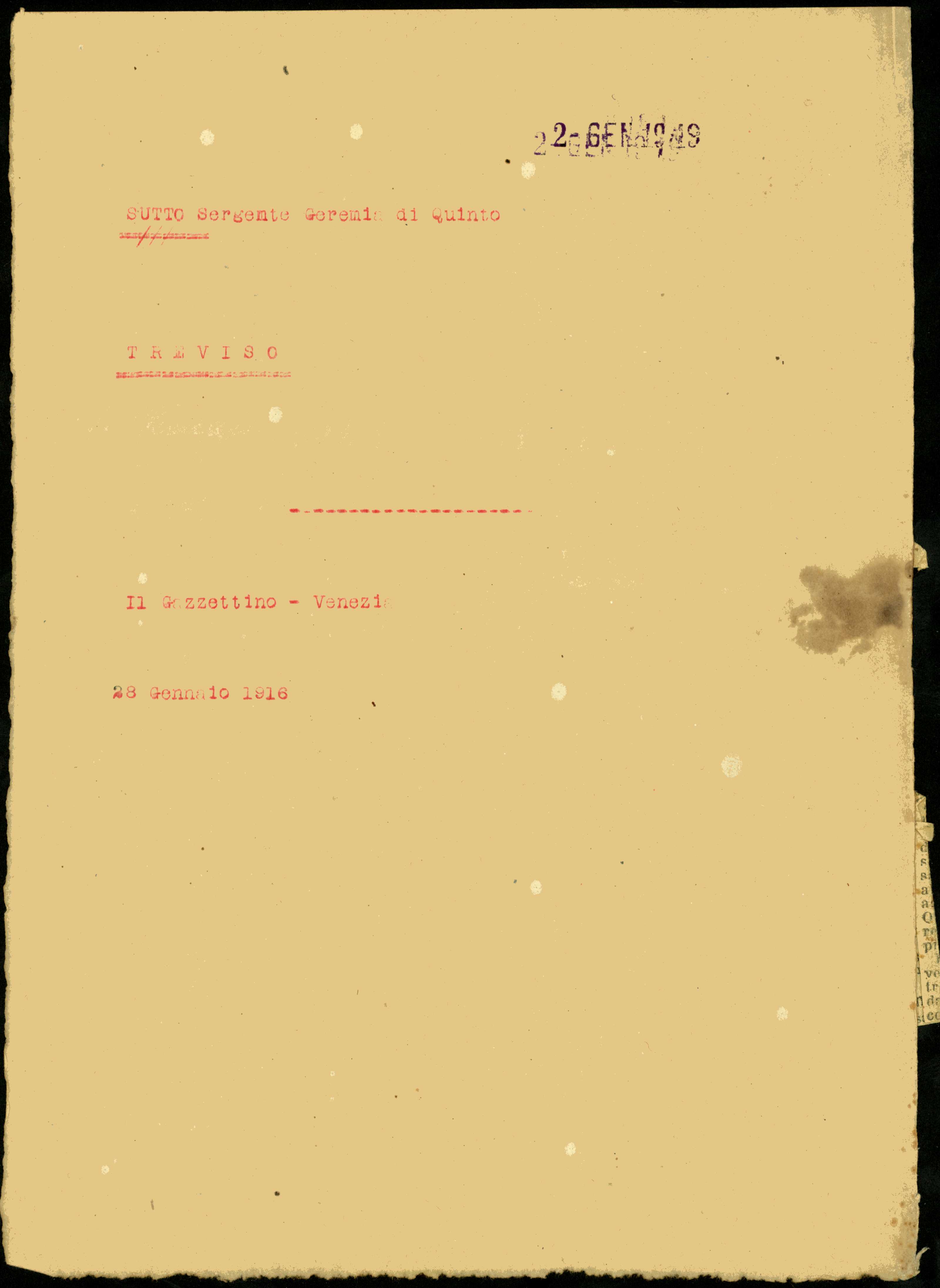 Istituto per la Storia del Risorgimento Italian.../Fondo caduti prima guerra mondiale/Stuardi Michele - Sverzut Augusto/Sutto Geremia, Treviso