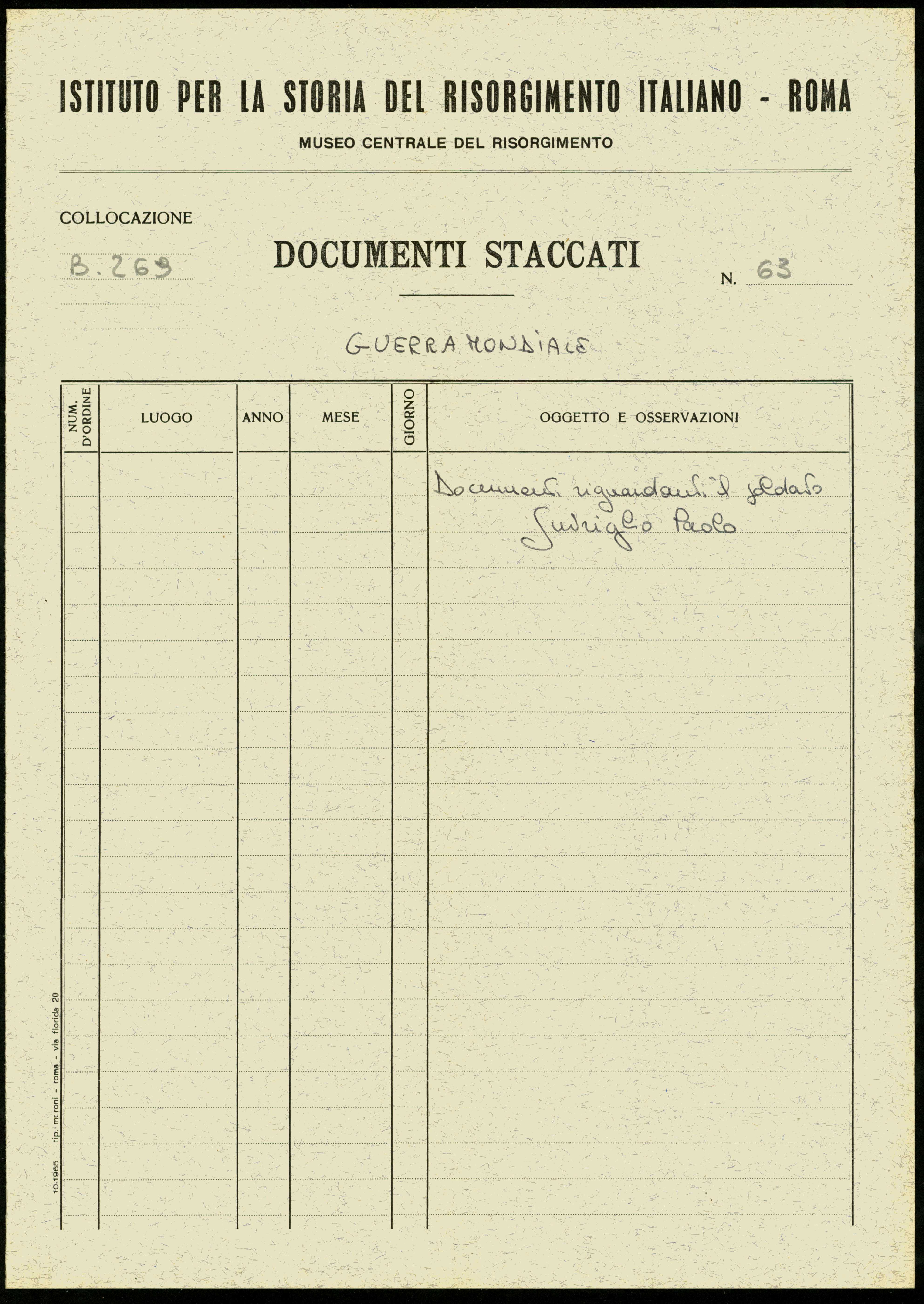 | Percorso: Istituto per la Storia del Risorgimento Italian.../Fondo caduti prima guerra mondiale/Stuardi Michele - Sverzut Augusto/Suvriglio Paolo, Palazzolo Acreide (Siracusa) | |||||||||||