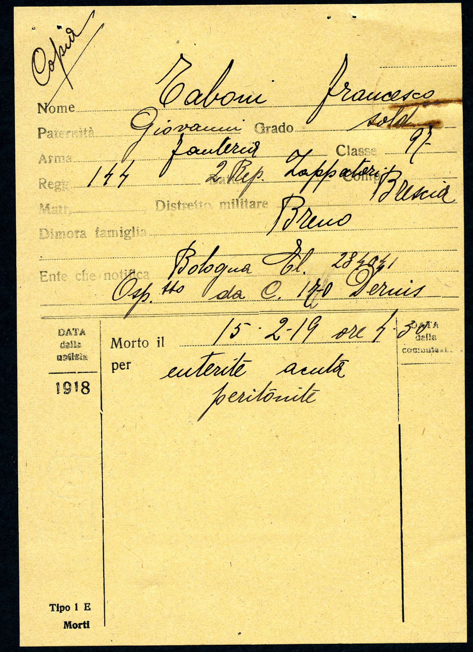 Istituto per la Storia del Risorgimento Italian.../Fondo caduti prima guerra mondiale/Tabacco Giovanni - Tagni Luigi /Taboni Francesco, Breno