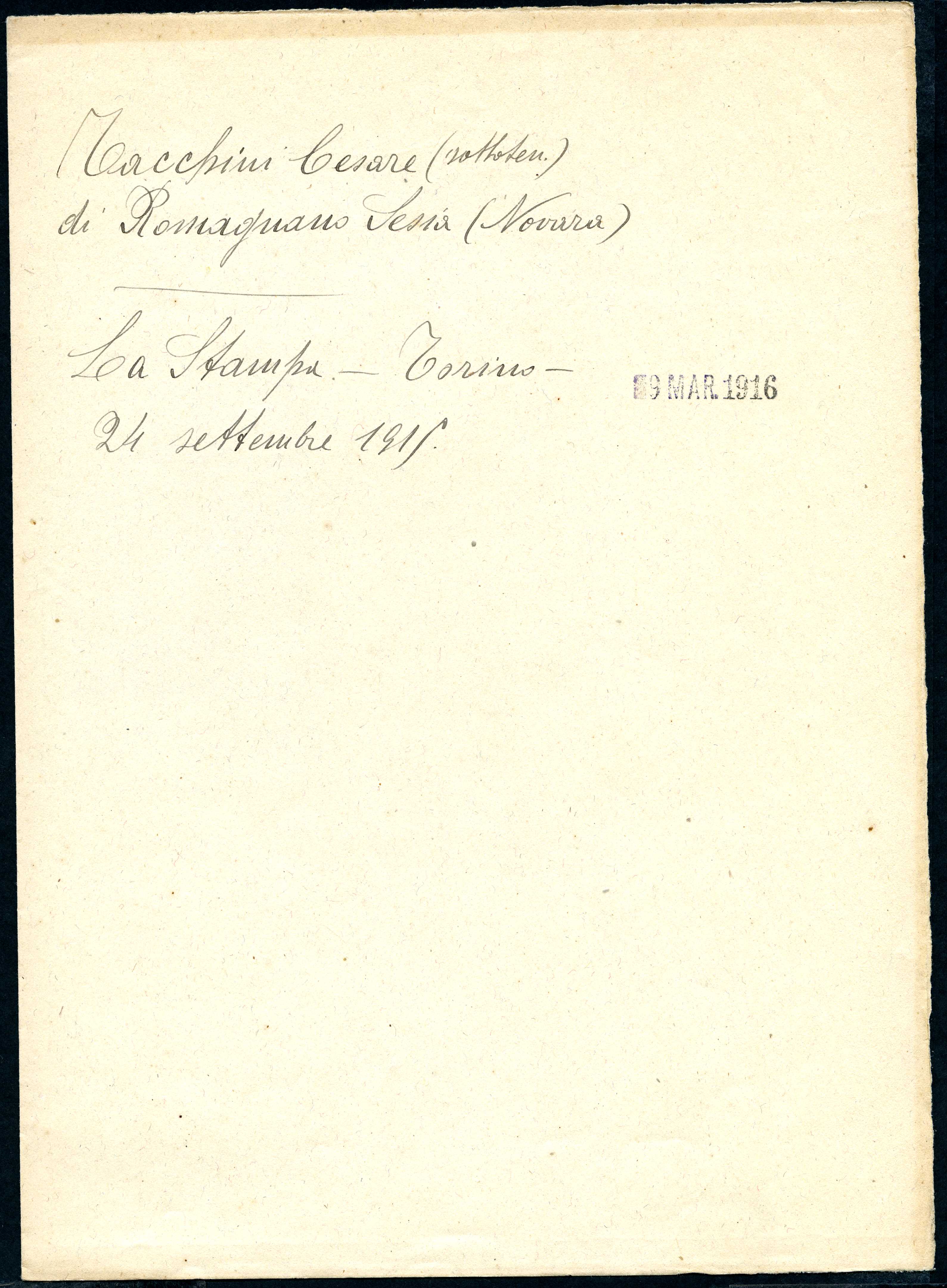 Percorso: Istituto per la Storia del Risorgimento Italian.../Fondo caduti prima guerra mondiale/Tabacco Giovanni - Tagni Luigi /Tacchini Cesare, Romagnano Sesia (Novara)