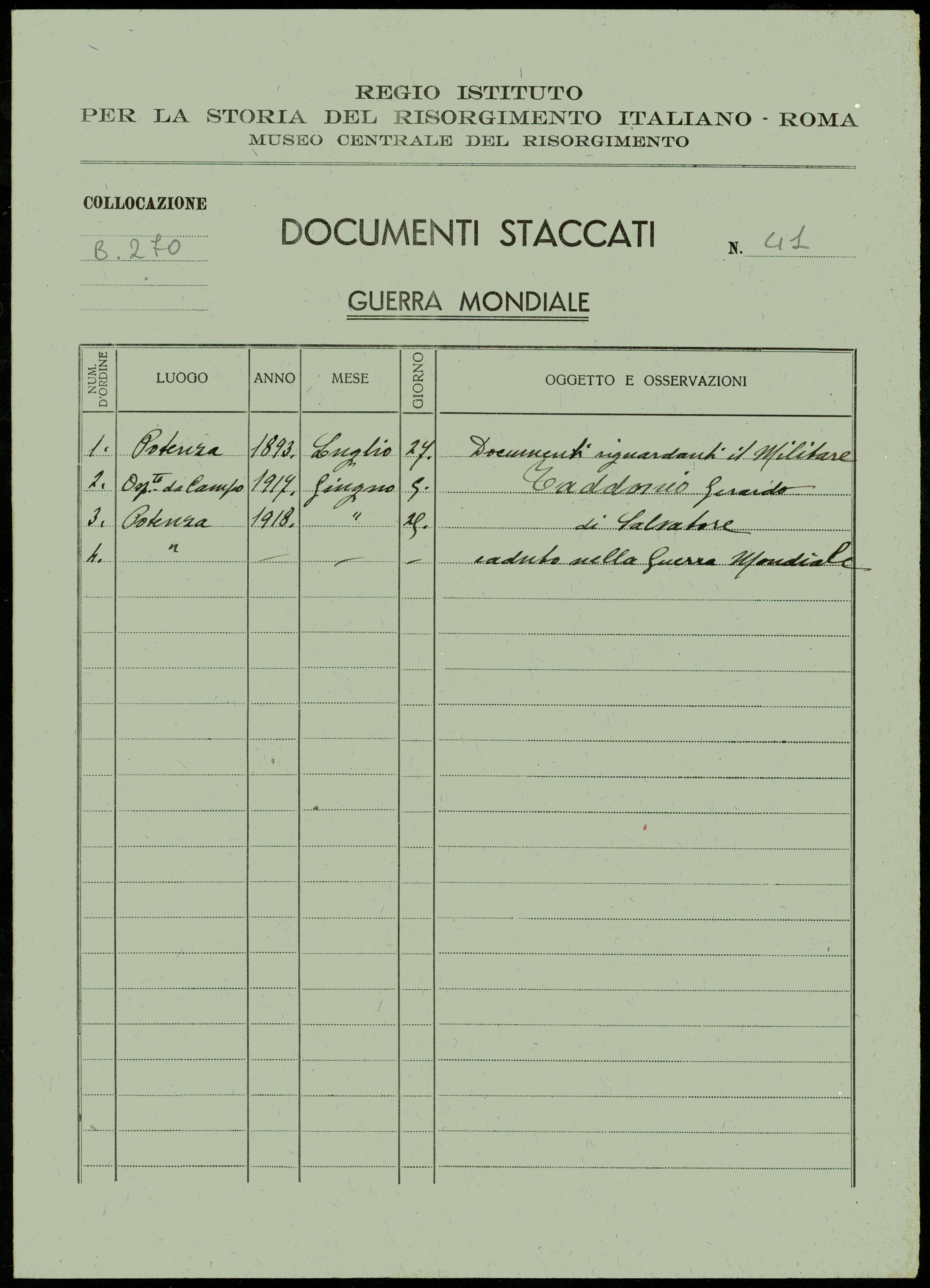 Istituto per la Storia del Risorgimento Italian.../Fondo caduti prima guerra mondiale/Tabacco Giovanni - Tagni Luigi /Taddonio Gerardo, Potenza