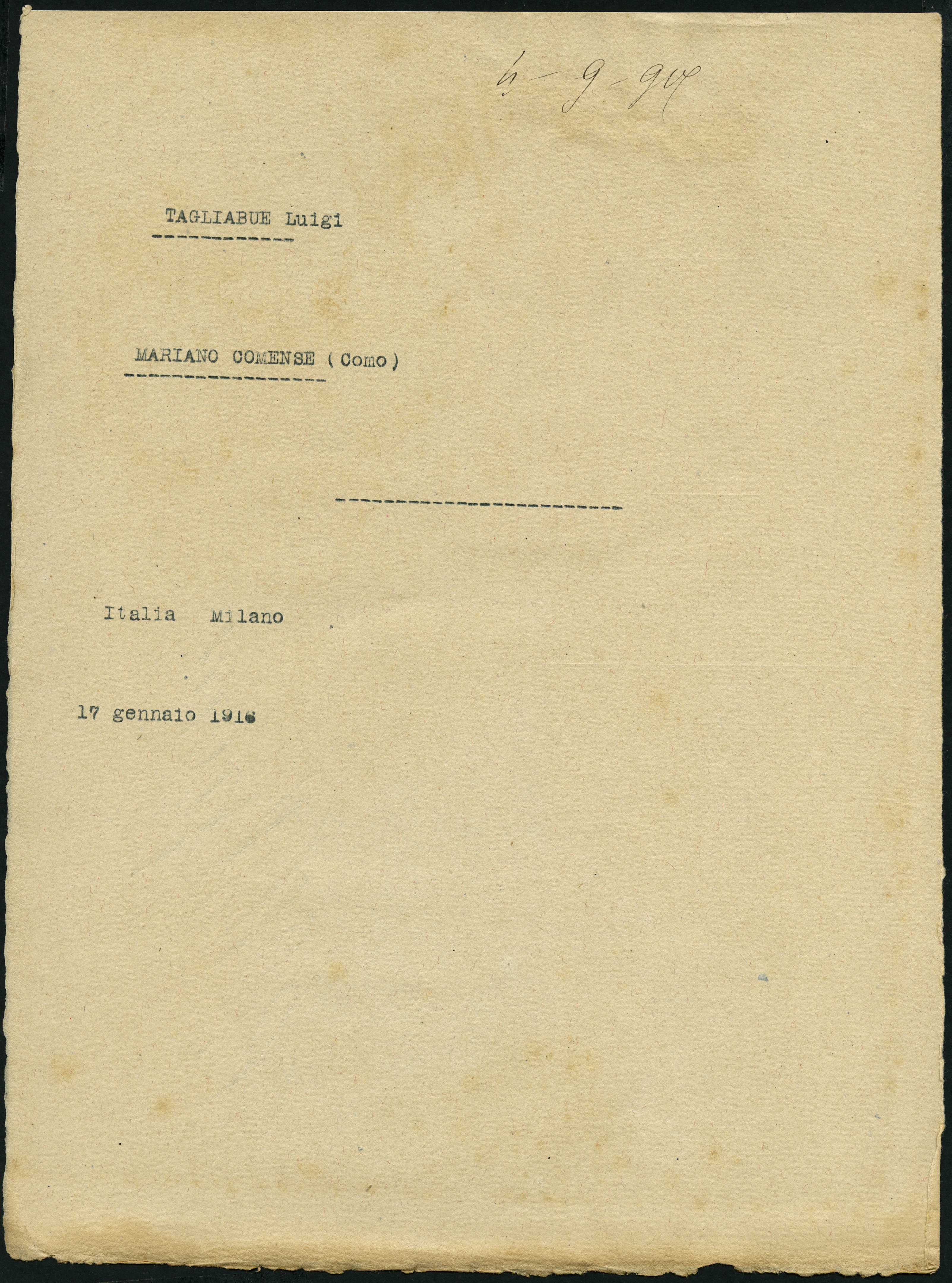 Percorso: Istituto per la Storia del Risorgimento Italian.../Fondo caduti prima guerra mondiale/Tabacco Giovanni - Tagni Luigi /Tagliabue Luigi, Mariano Comense (Como)
