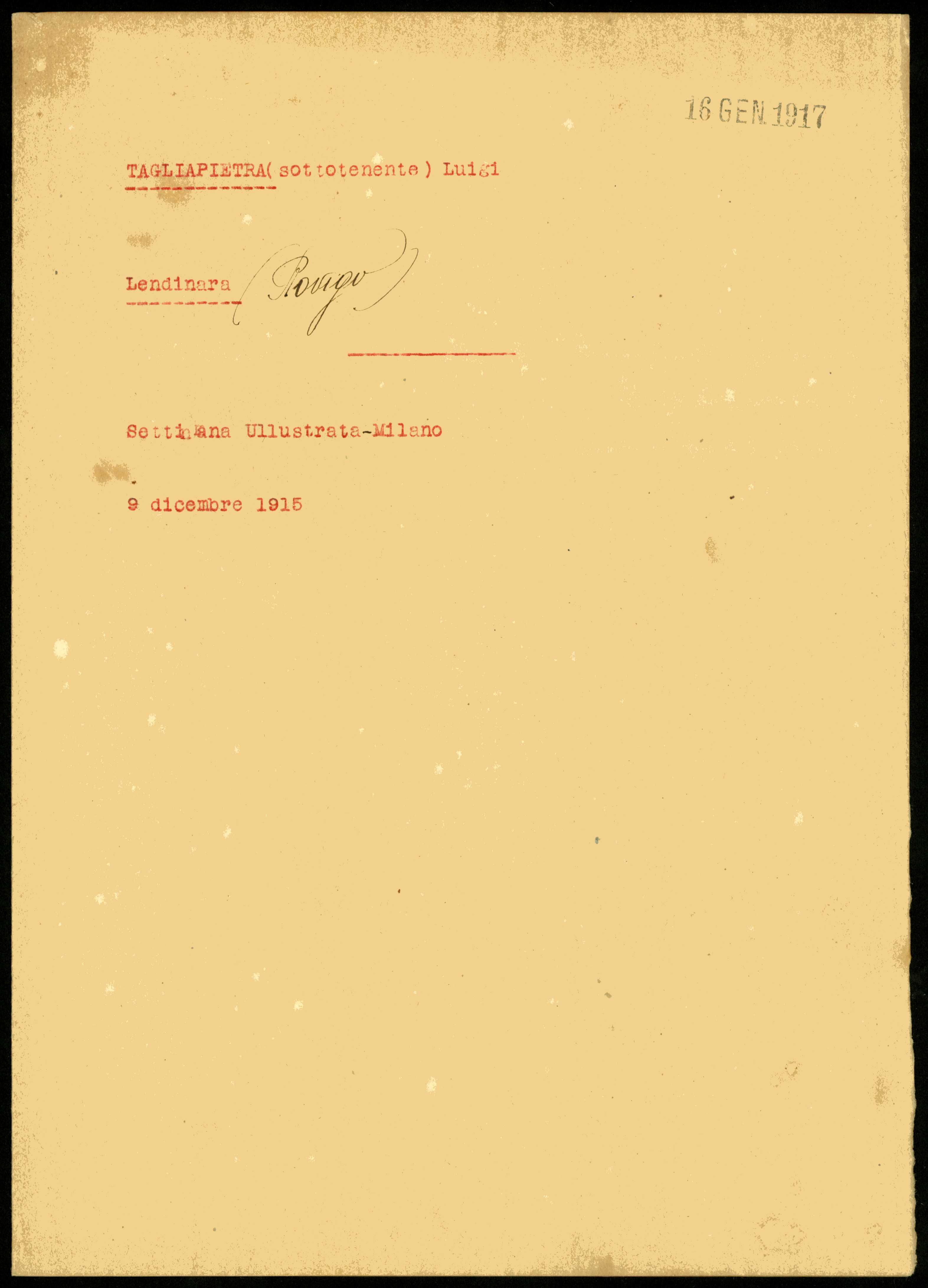Documento: Tagliapietra Luigi, Lendinara (Rovigo)