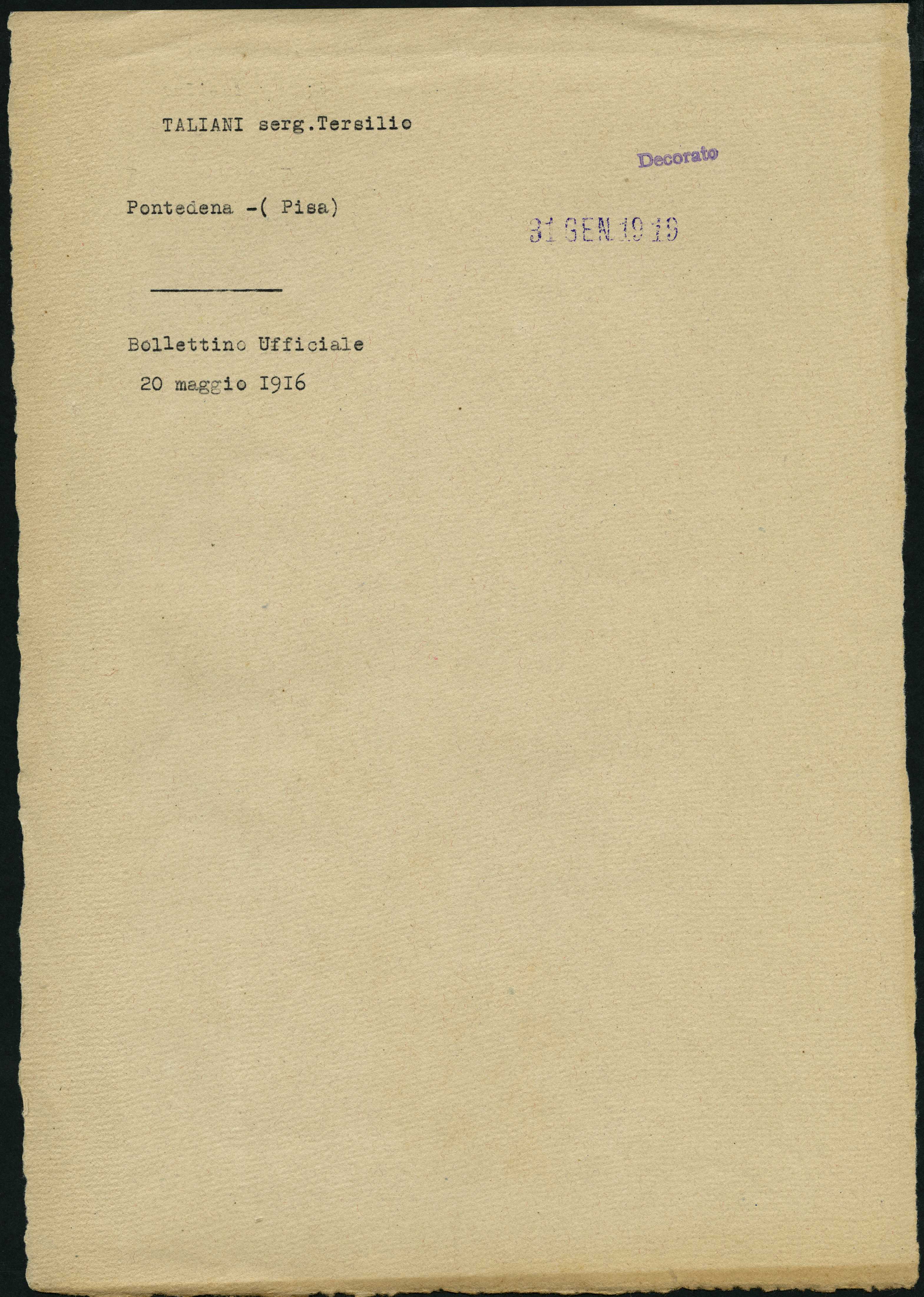 Istituto per la Storia del Risorgimento Italian.../Fondo caduti prima guerra mondiale/Taibi Giuseppe - Tapparo Francesco/Taliani Tersilio, Lari (Pisa)