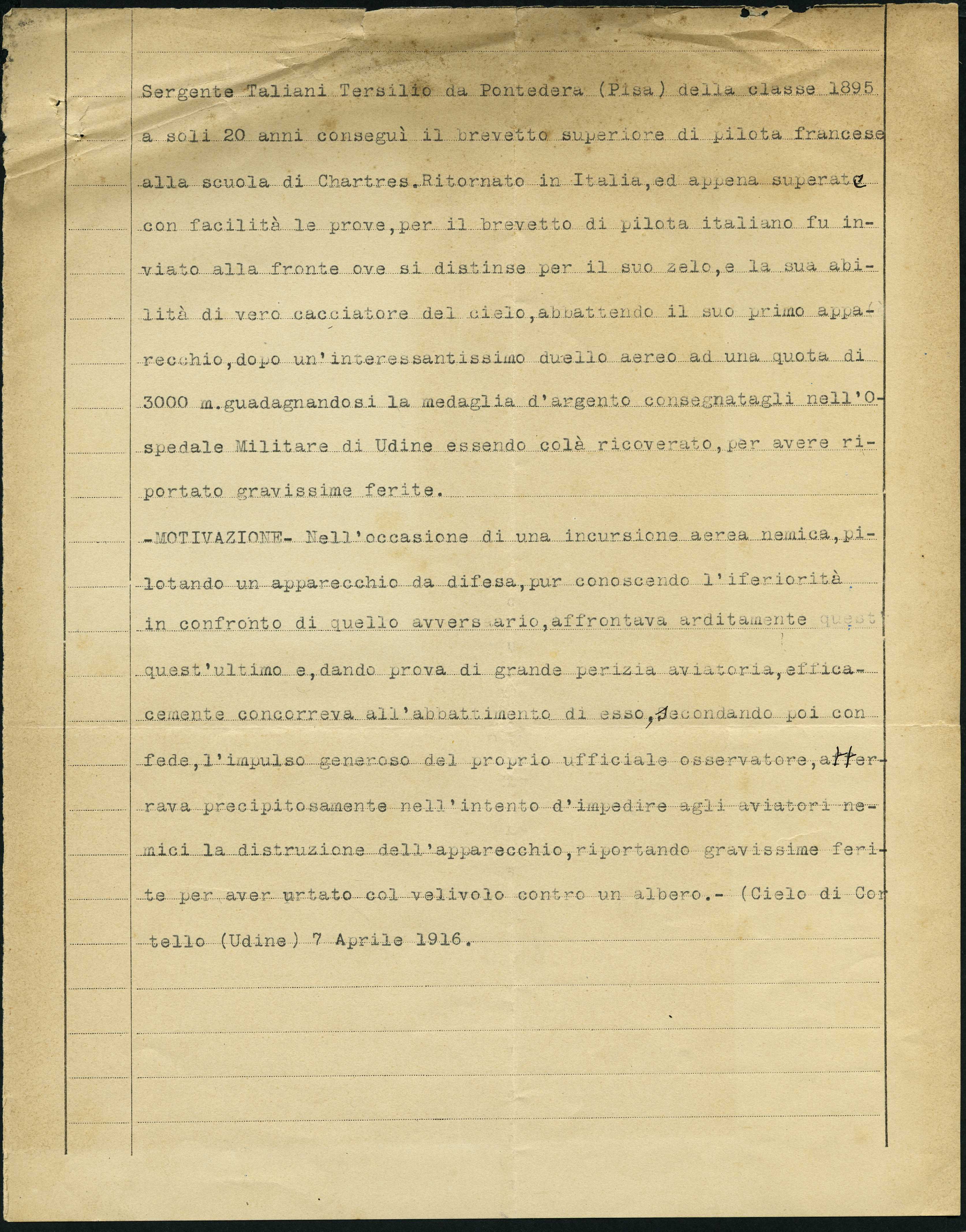 Istituto per la Storia del Risorgimento Italian.../Fondo caduti prima guerra mondiale/Taibi Giuseppe - Tapparo Francesco/Taliani Tersilio, Lari (Pisa)