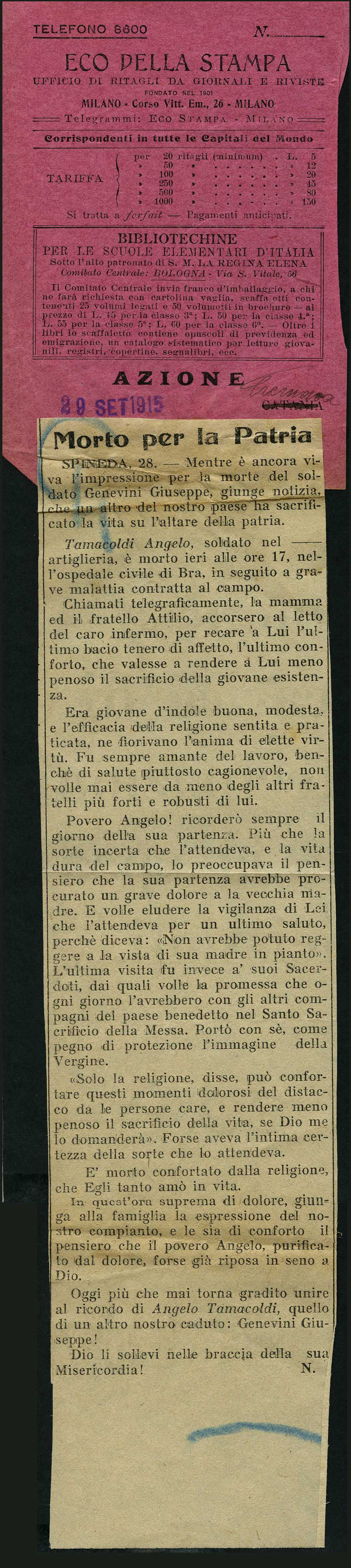 Percorso: Istituto per la Storia del Risorgimento Italian.../Fondo caduti prima guerra mondiale/Taibi Giuseppe - Tapparo Francesco/Tamacoldi Angelo, Spineda (Cremona)