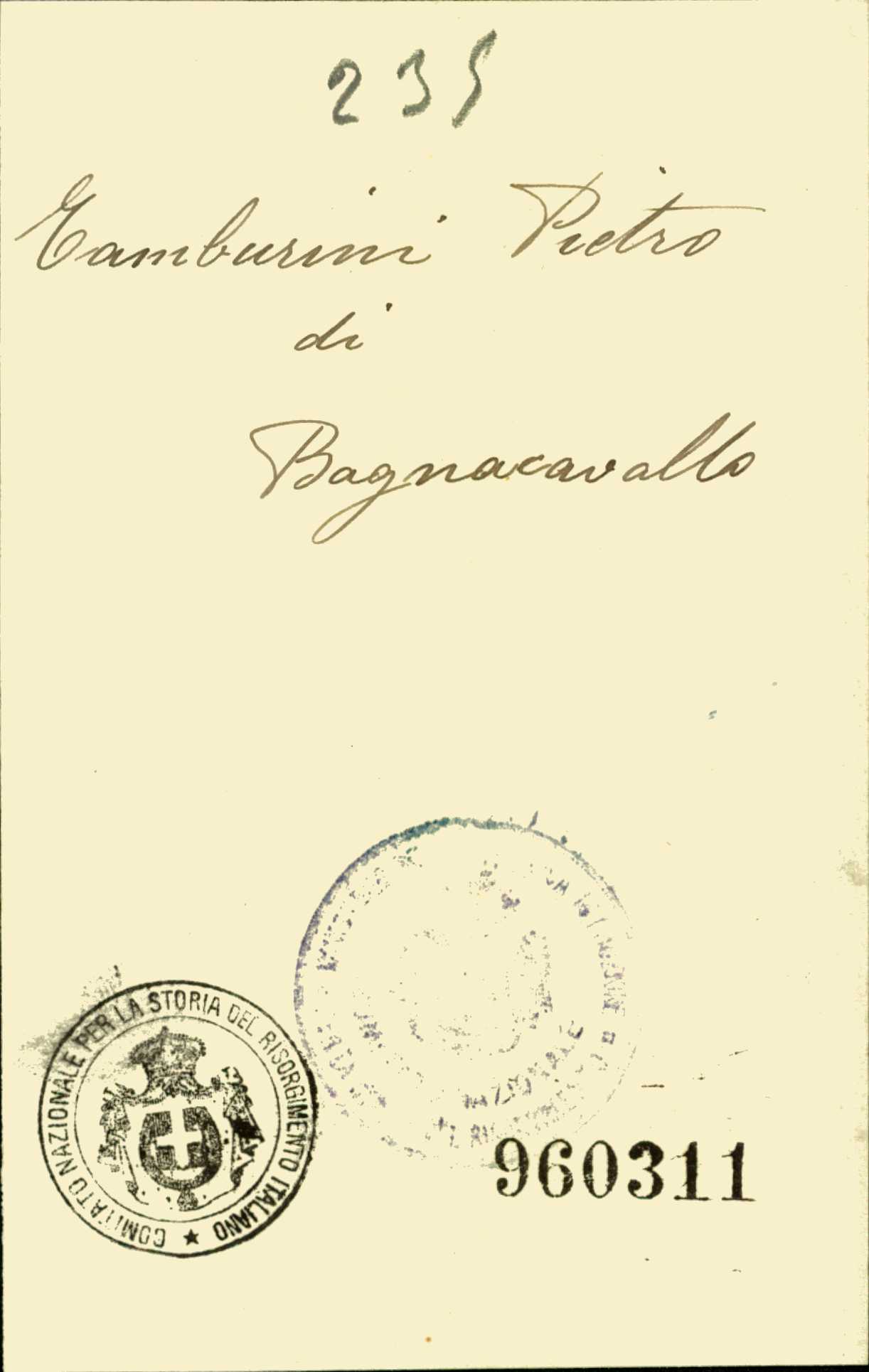 | Percorso: Istituto per la Storia del Risorgimento Italian.../Fondo caduti prima guerra mondiale/Taibi Giuseppe - Tapparo Francesco/Tamburini Pietro, Bagnacavallo (Ravenna) | |||||||||||