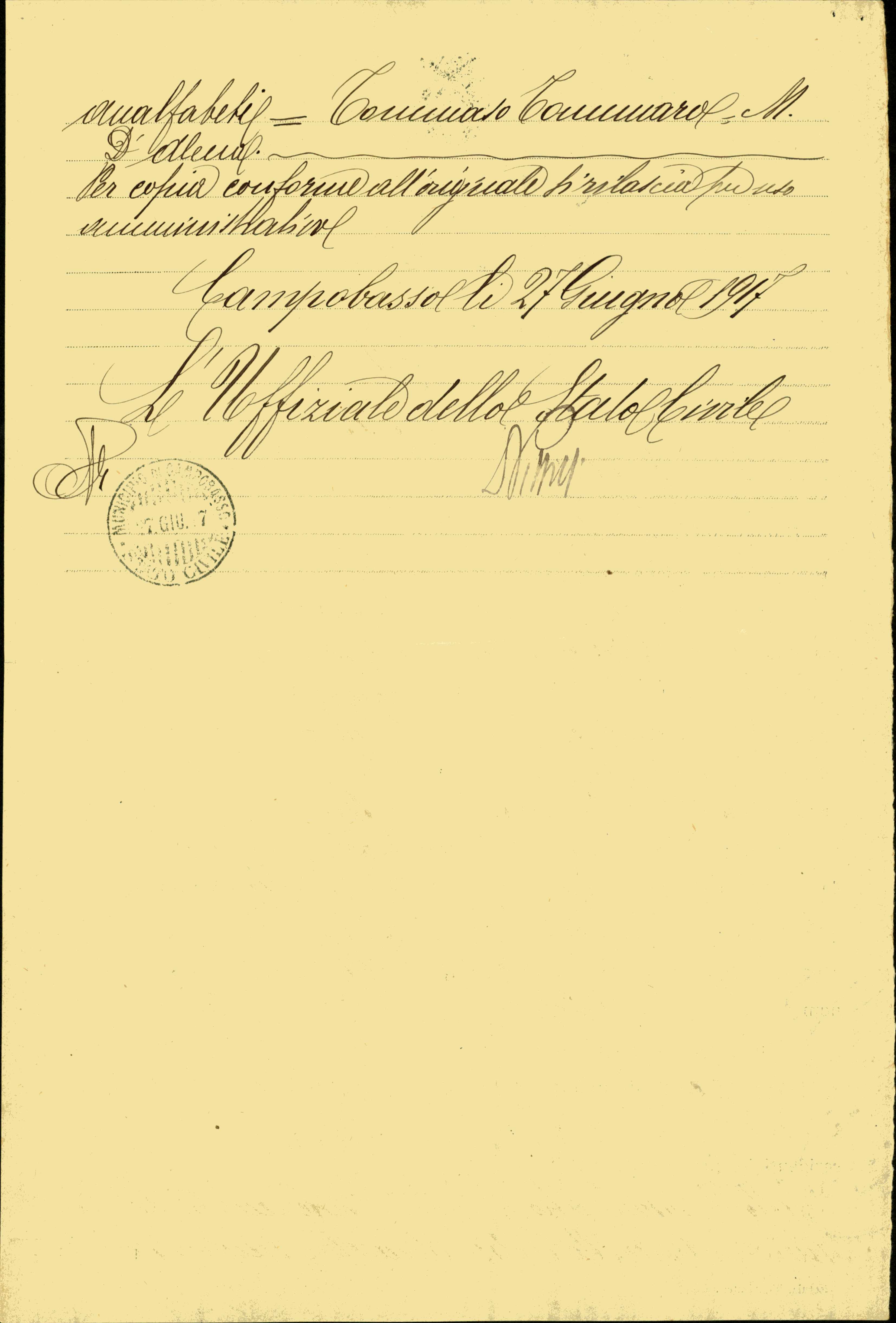 Istituto per la Storia del Risorgimento Italian.../Fondo caduti prima guerra mondiale/Taibi Giuseppe - Tapparo Francesco/Tammaro Salvatore, Campobasso
