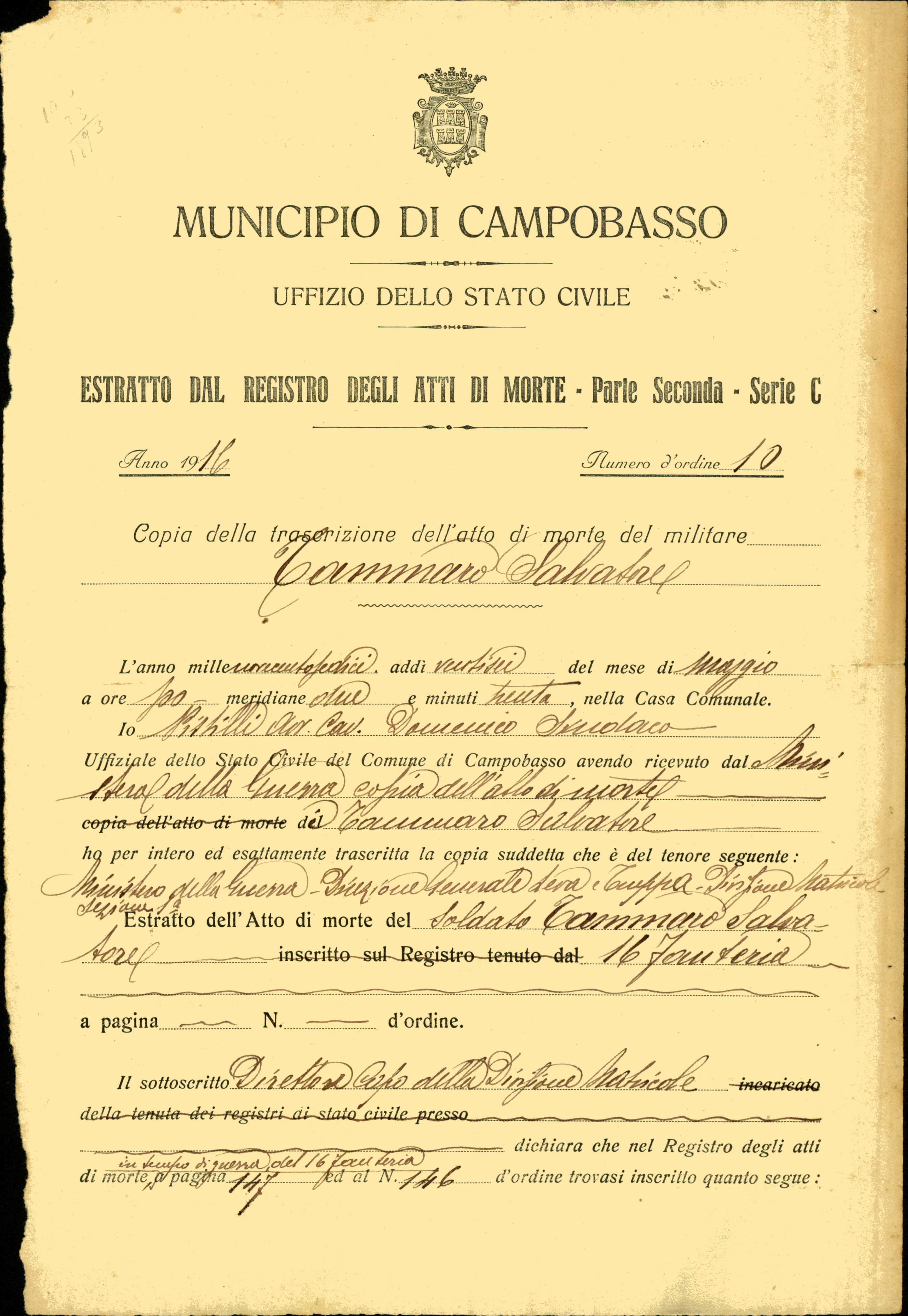 Istituto per la Storia del Risorgimento Italian.../Fondo caduti prima guerra mondiale/Taibi Giuseppe - Tapparo Francesco/Tammaro Salvatore, Campobasso