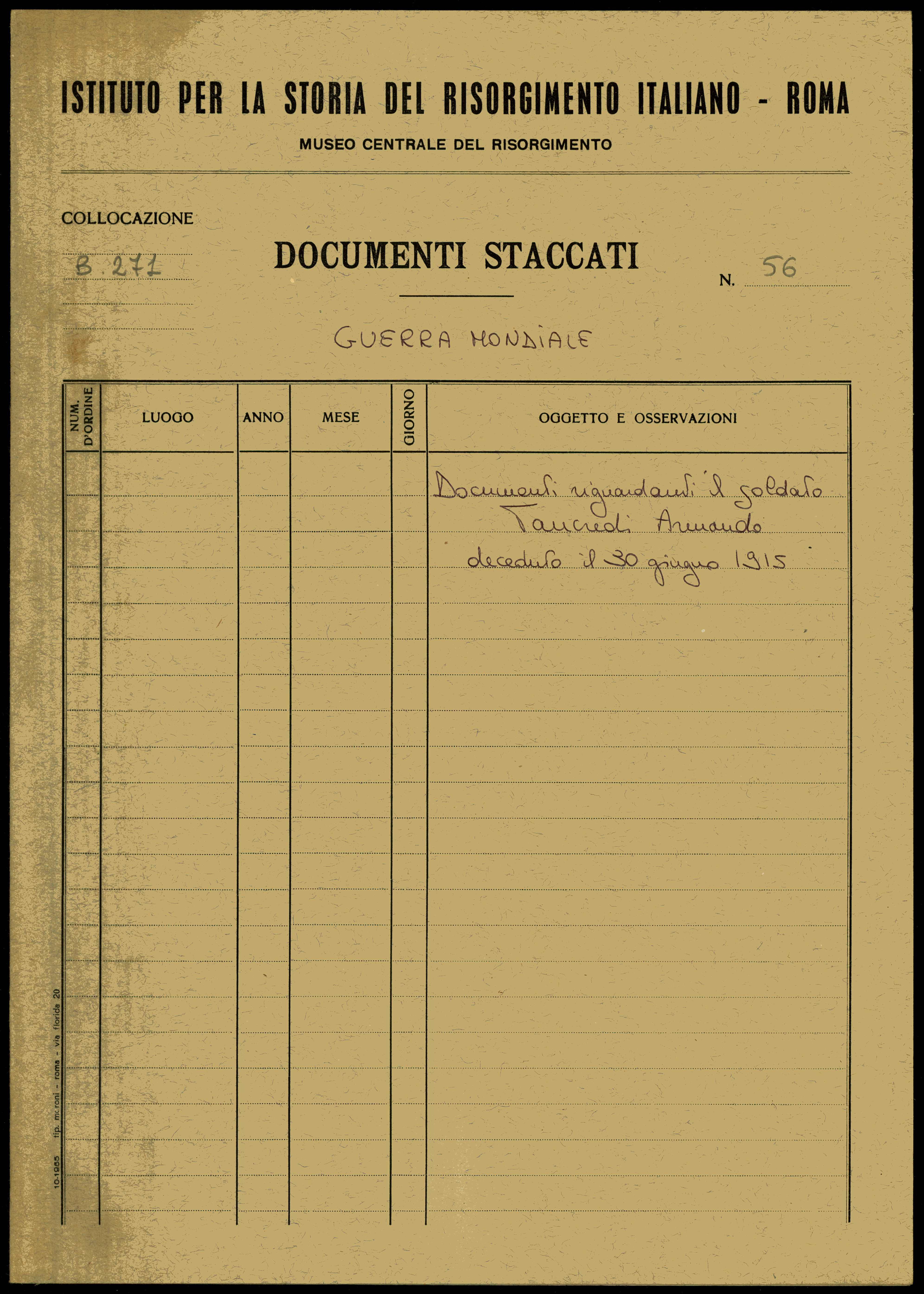 Istituto per la Storia del Risorgimento Italian.../Fondo caduti prima guerra mondiale/Taibi Giuseppe - Tapparo Francesco/Tancredi Armando, Napoli