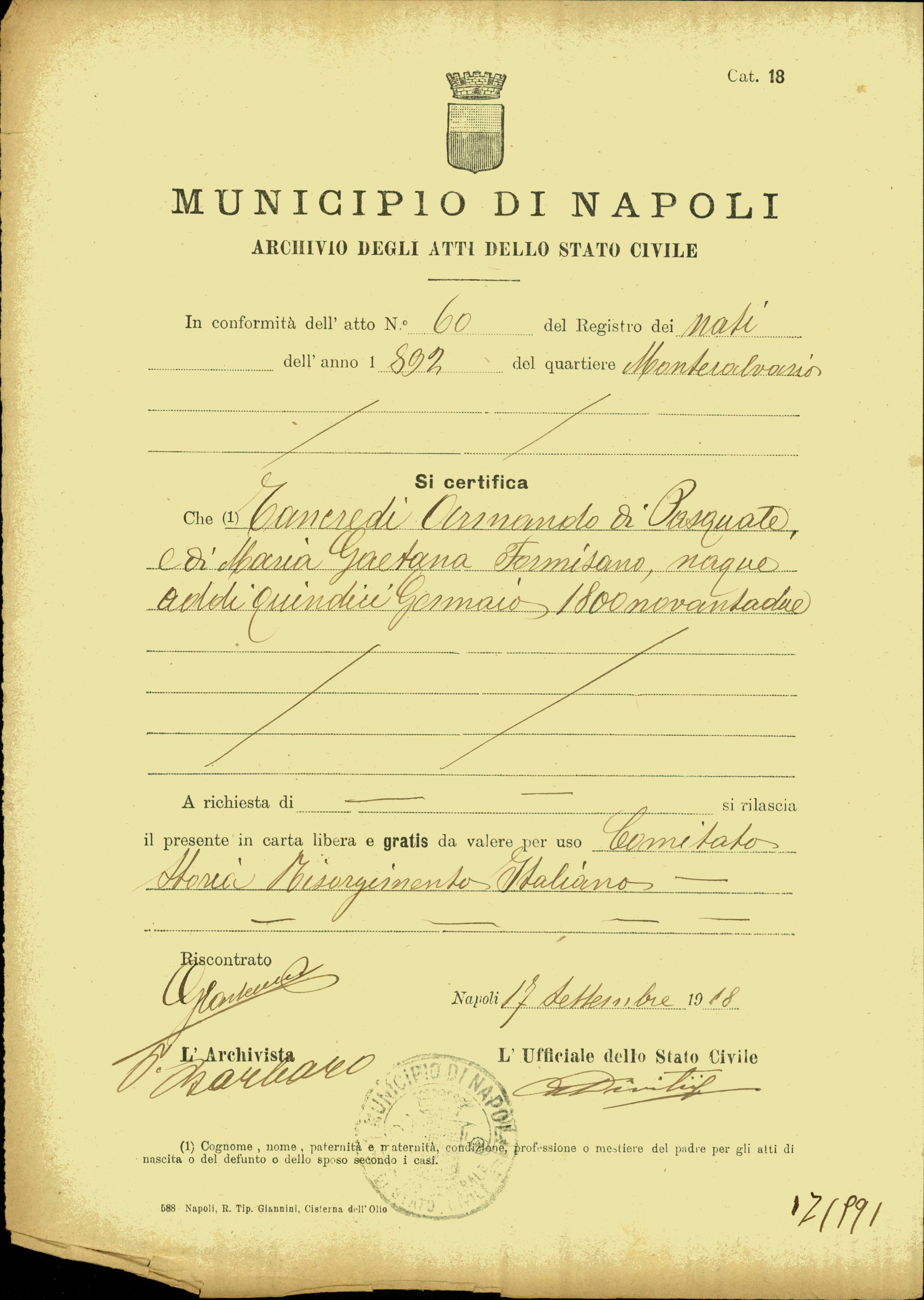 Istituto per la Storia del Risorgimento Italian.../Fondo caduti prima guerra mondiale/Taibi Giuseppe - Tapparo Francesco/Tancredi Armando, Napoli