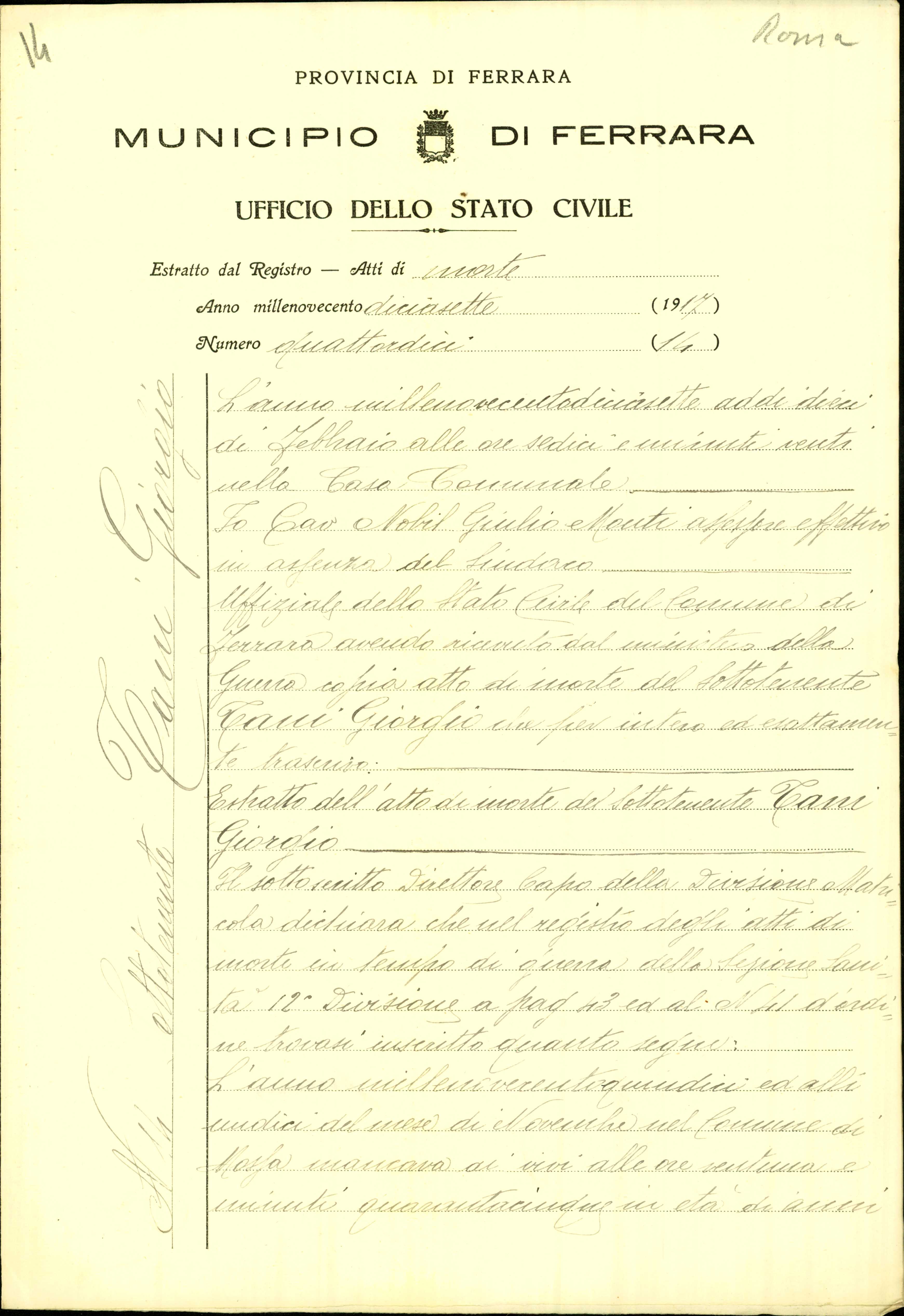 Istituto per la Storia del Risorgimento Italian.../Fondo caduti prima guerra mondiale/Taibi Giuseppe - Tapparo Francesco/Tani Giorgio, Ferrara