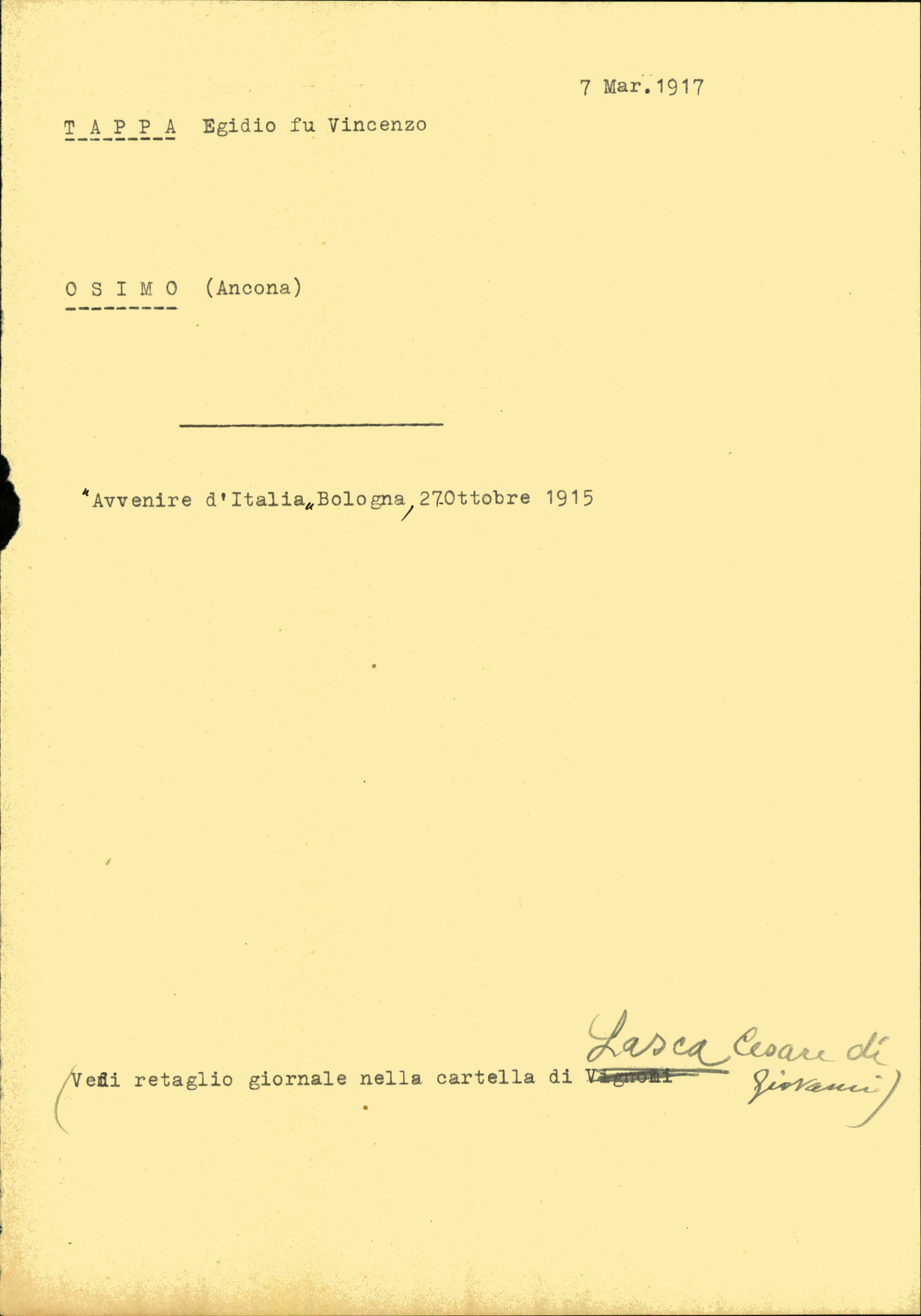 Istituto per la Storia del Risorgimento Italian.../Fondo caduti prima guerra mondiale/Taibi Giuseppe - Tapparo Francesco/Tappa Egidio, Osimo (Ancona)