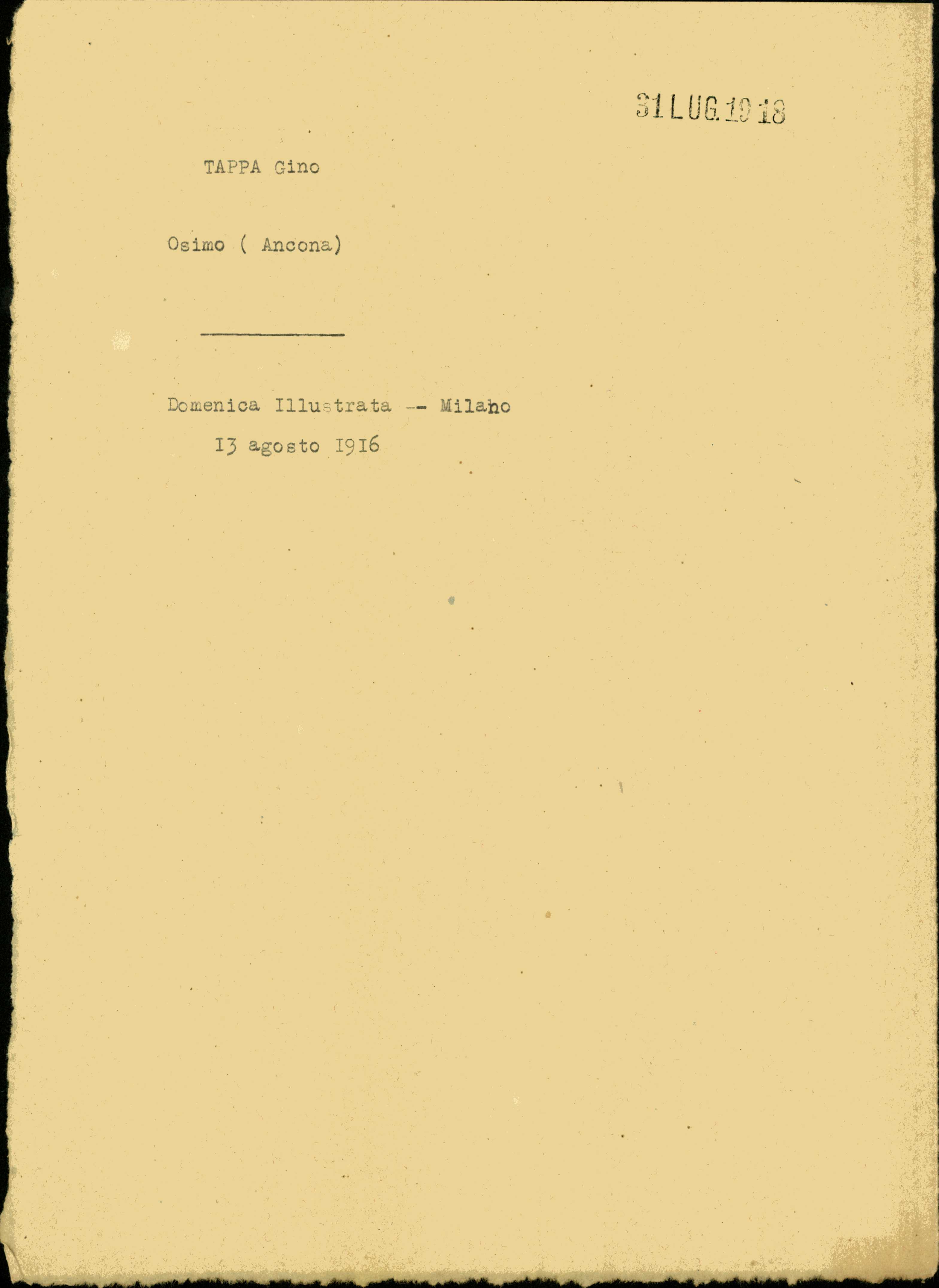 Istituto per la Storia del Risorgimento Italian.../Fondo caduti prima guerra mondiale/Taibi Giuseppe - Tapparo Francesco/Tappa Gino, Osimo (Ancona)