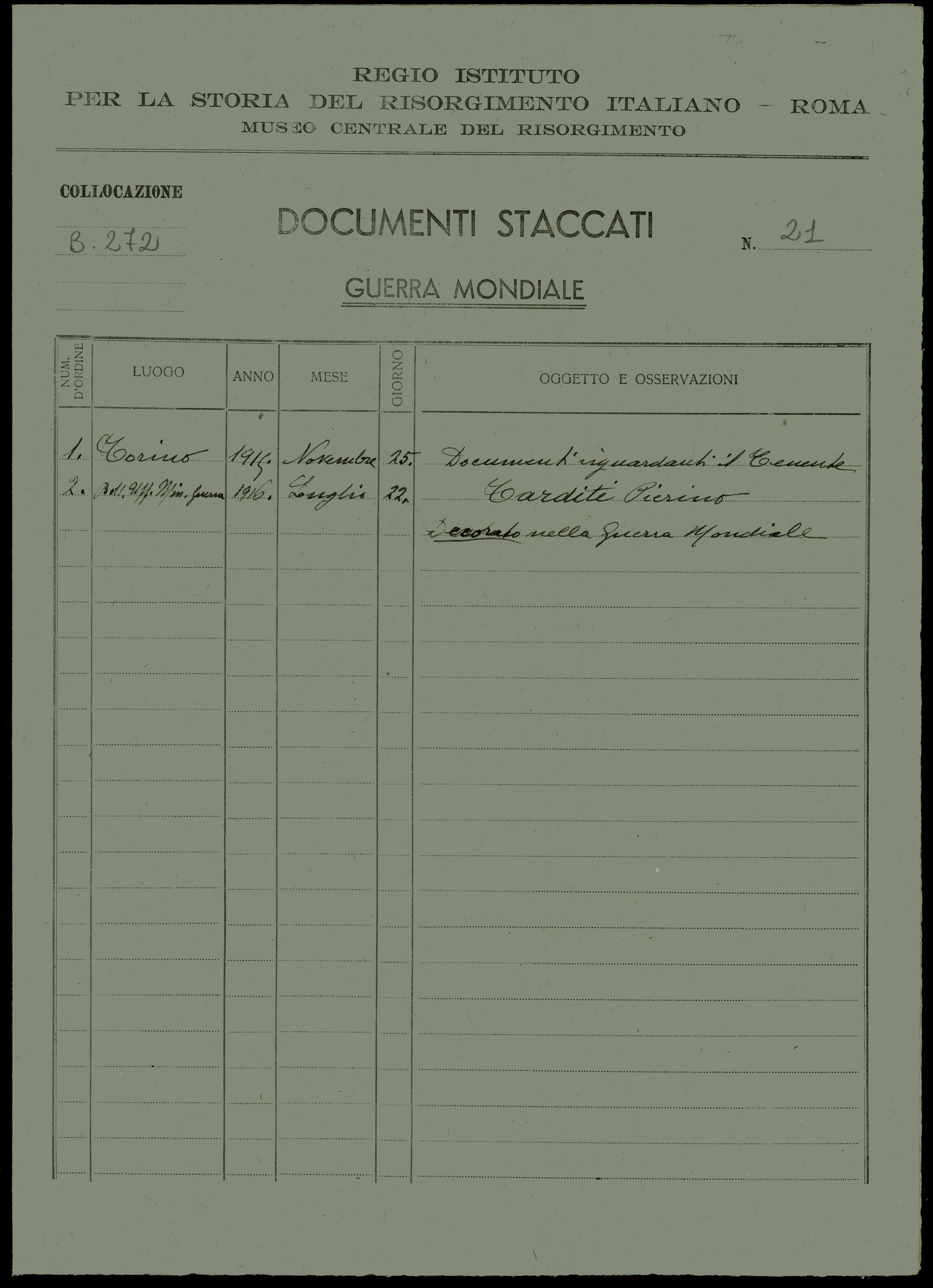 | Percorso: Istituto per la Storia del Risorgimento Italian.../Fondo caduti prima guerra mondiale/Tappi Carlo - Tassetti Adolfo/Tarditi Pierino, Casal Monferrato (Alessandria) | |||||||||||