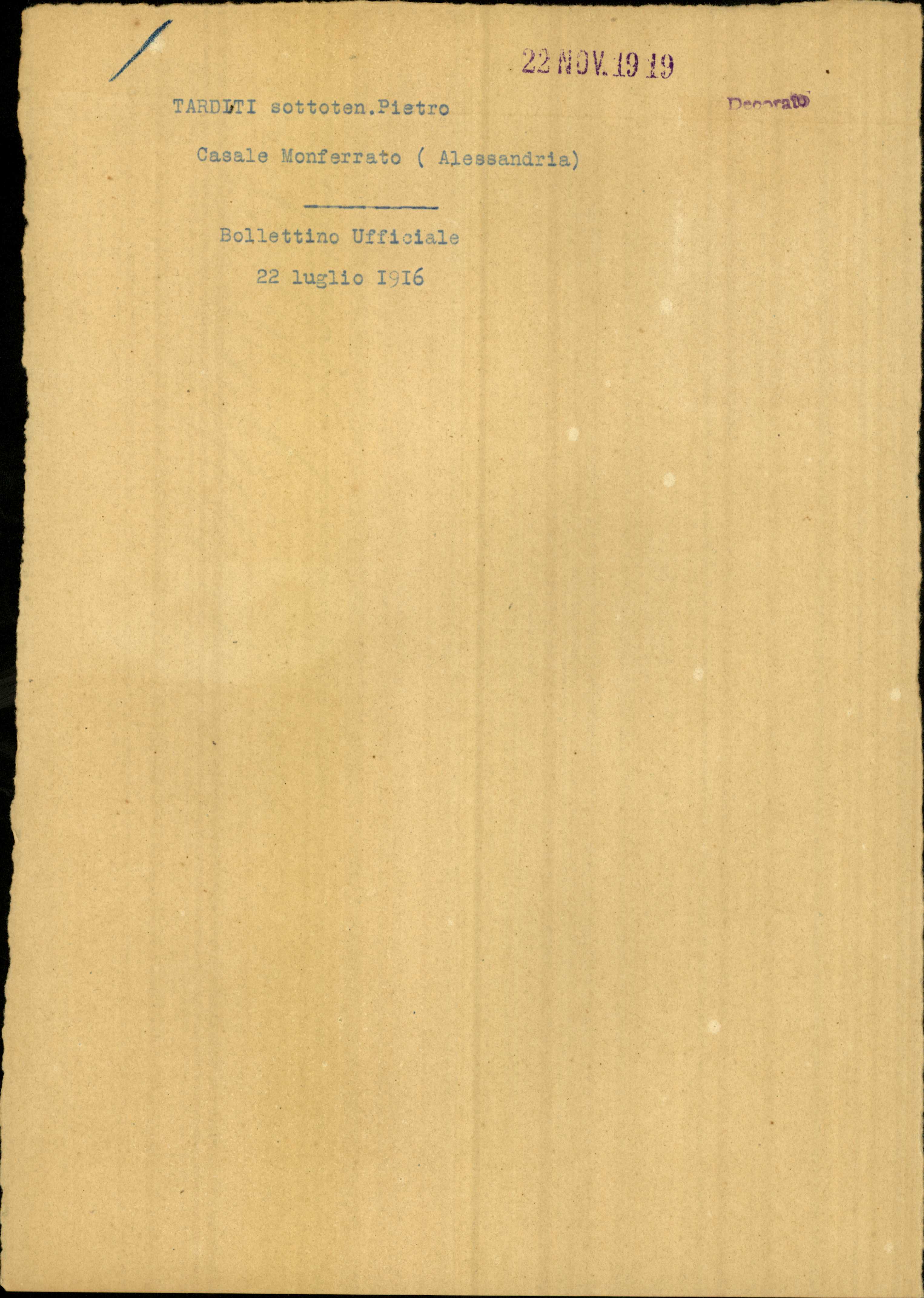 | Percorso: Istituto per la Storia del Risorgimento Italian.../Fondo caduti prima guerra mondiale/Tappi Carlo - Tassetti Adolfo/Tarditi Pierino, Casal Monferrato (Alessandria) | |||||||||||