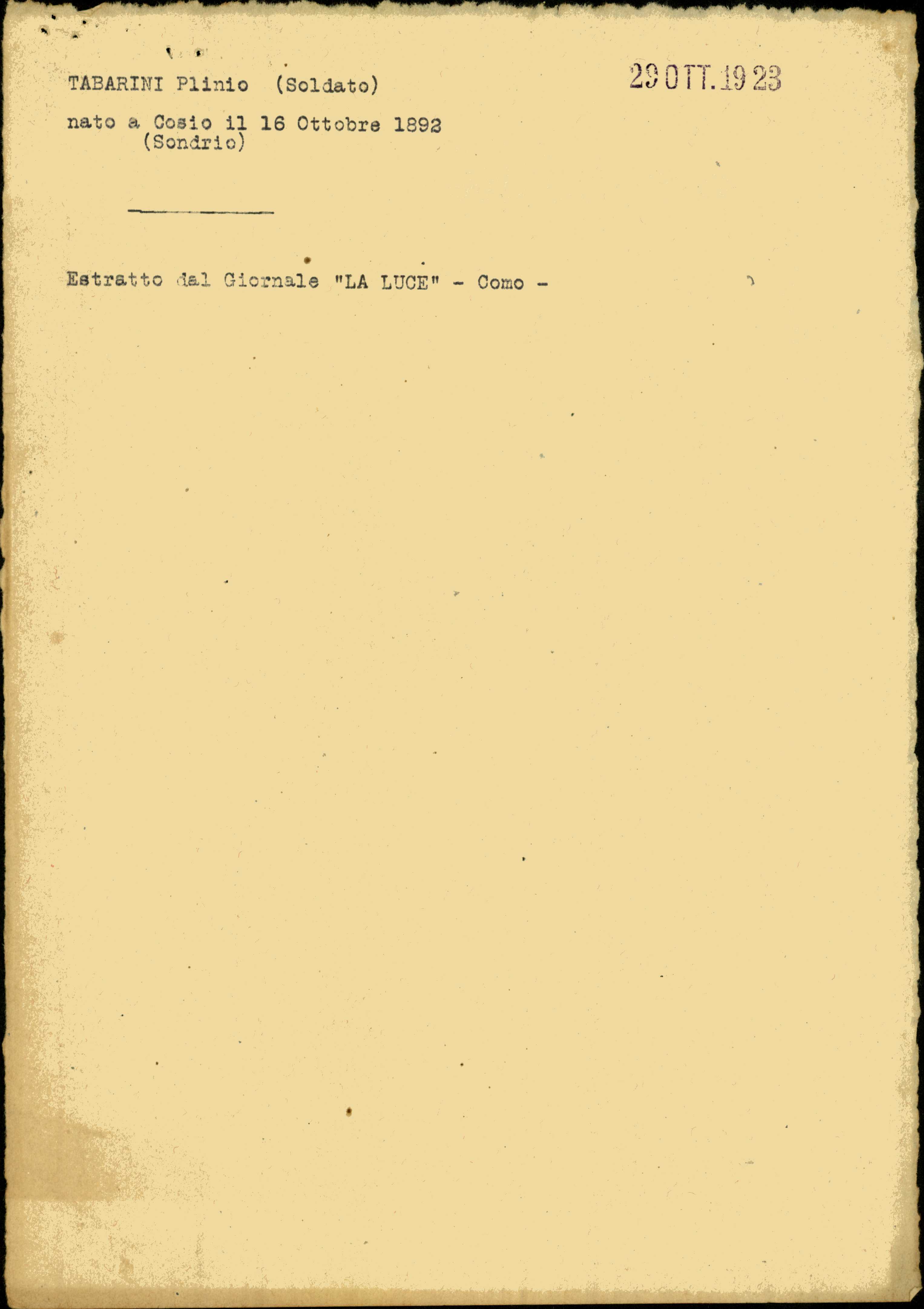 Documento: Tarabini Plinio, Cosio Valtellino (Sondrio)