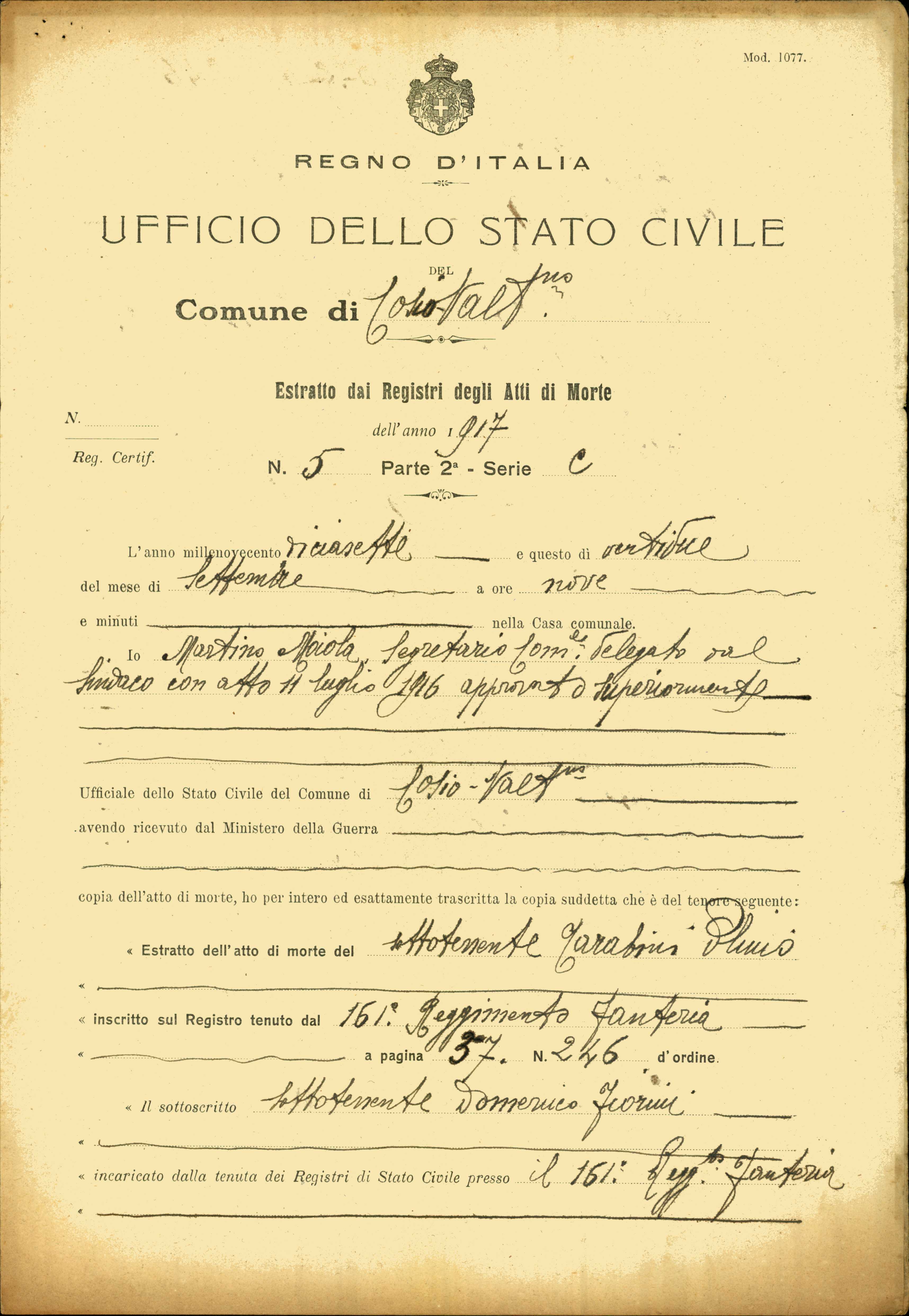 | Percorso: Istituto per la Storia del Risorgimento Italian.../Fondo caduti prima guerra mondiale/Tappi Carlo - Tassetti Adolfo/Tarabini Plinio, Cosio Valtellino (Sondrio) | |||||||||||