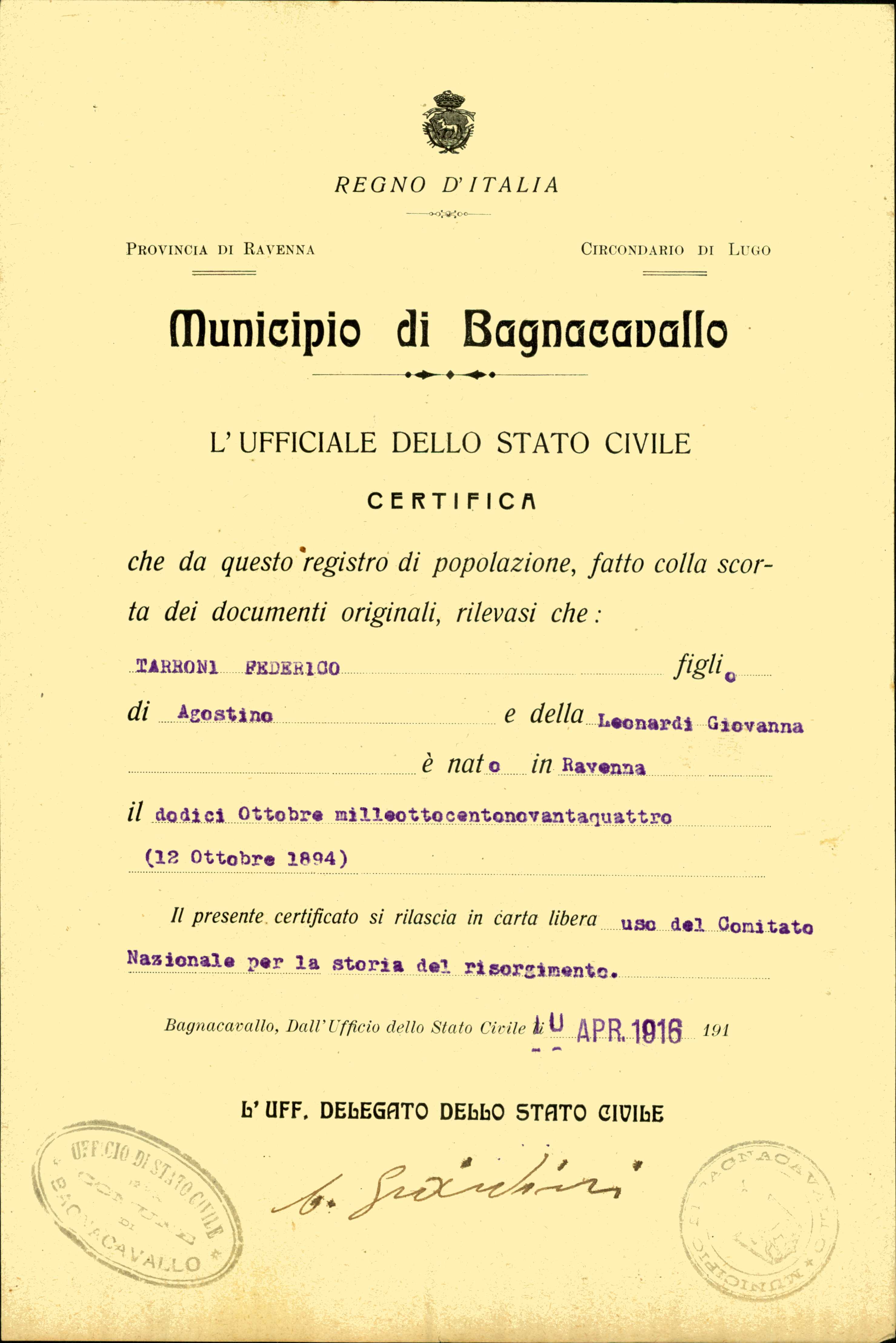 Tarroni Federico, Bagnacavallo (Ravenna) |