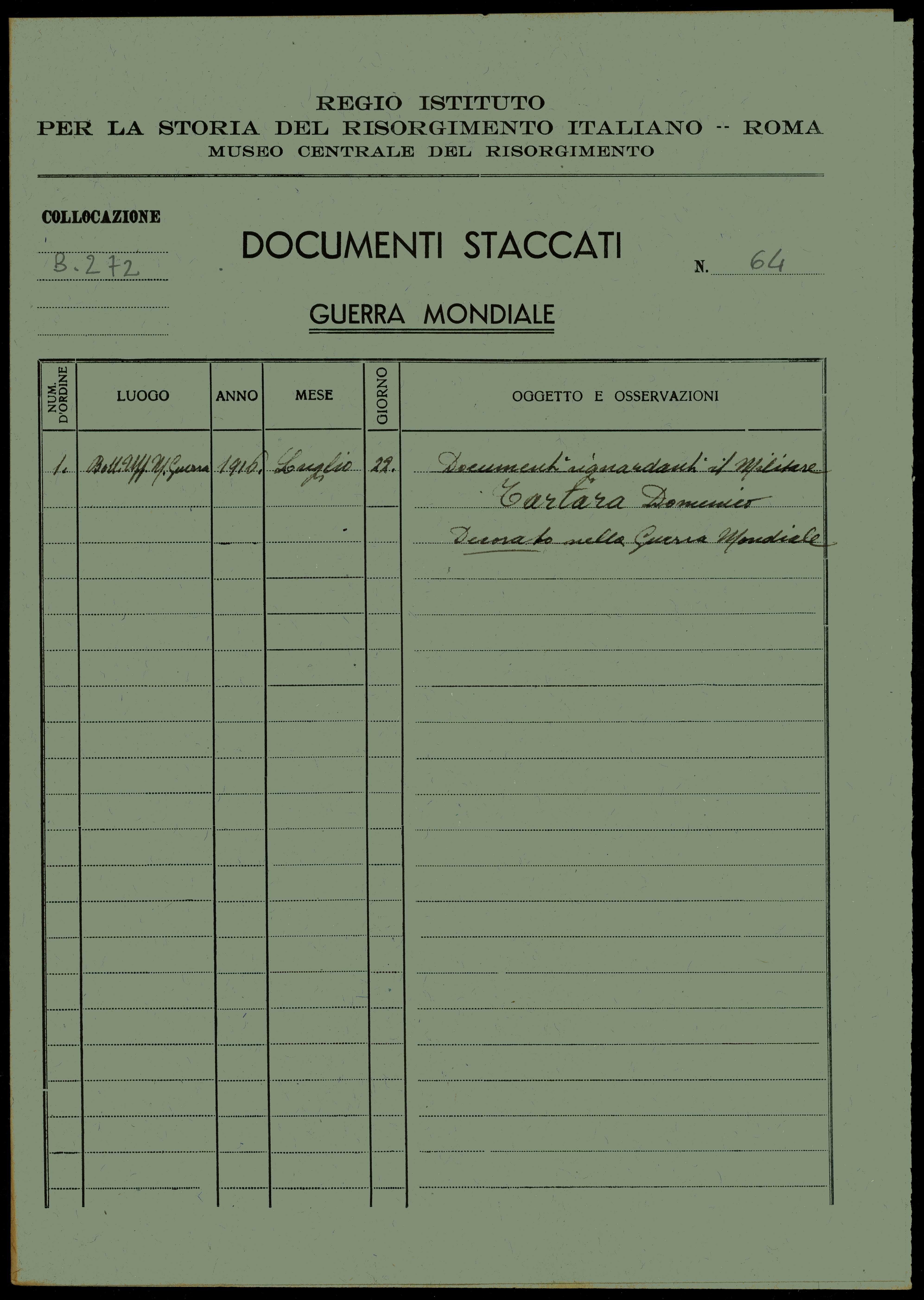 Percorso: Istituto per la Storia del Risorgimento Italian.../Fondo caduti prima guerra mondiale/Tappi Carlo - Tassetti Adolfo/Tartara Domenico, Bosco Marengo (Alessandria)