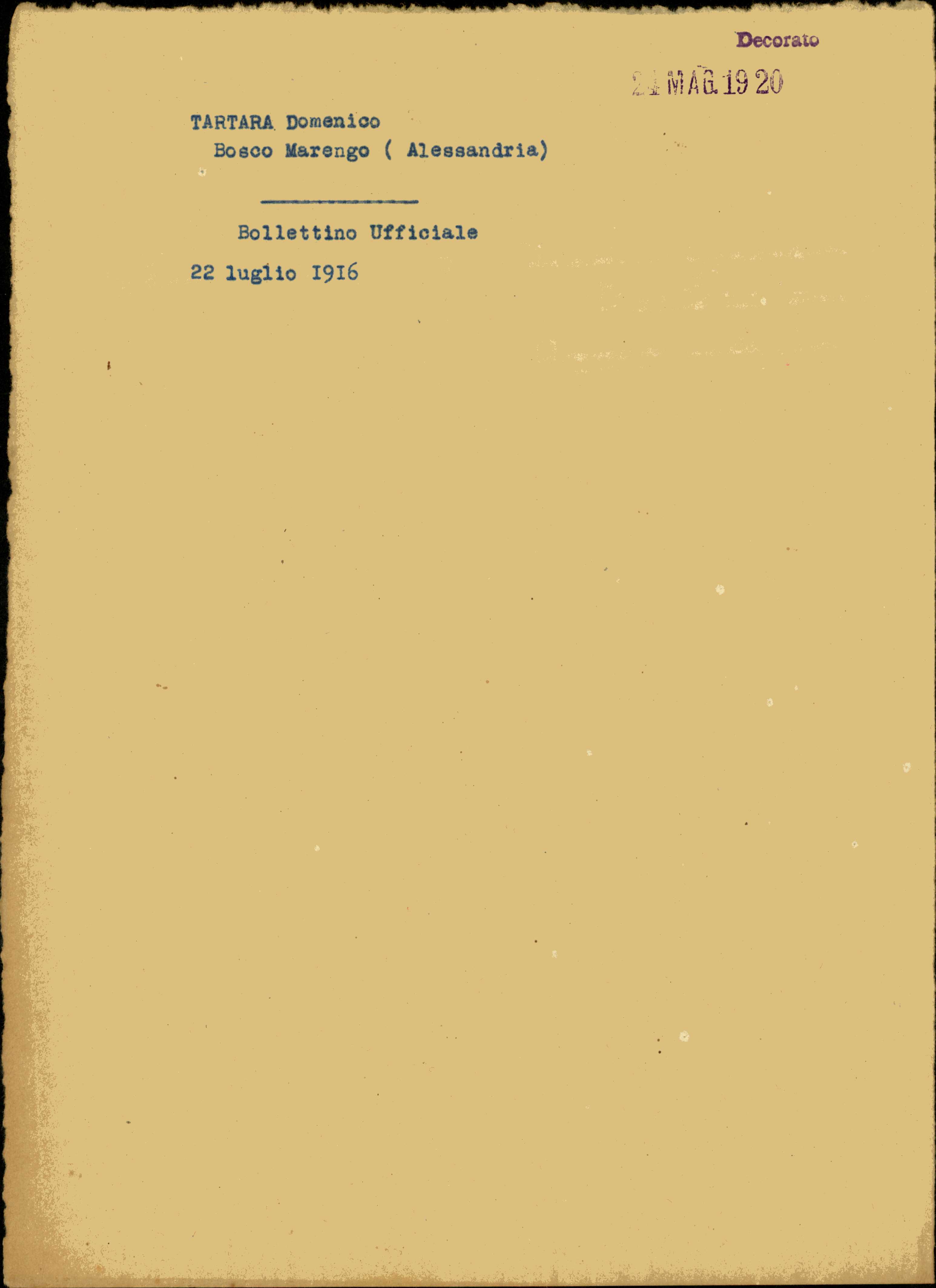 | Percorso: Istituto per la Storia del Risorgimento Italian.../Fondo caduti prima guerra mondiale/Tappi Carlo - Tassetti Adolfo/Tartara Domenico, Bosco Marengo (Alessandria) | |||||||||||