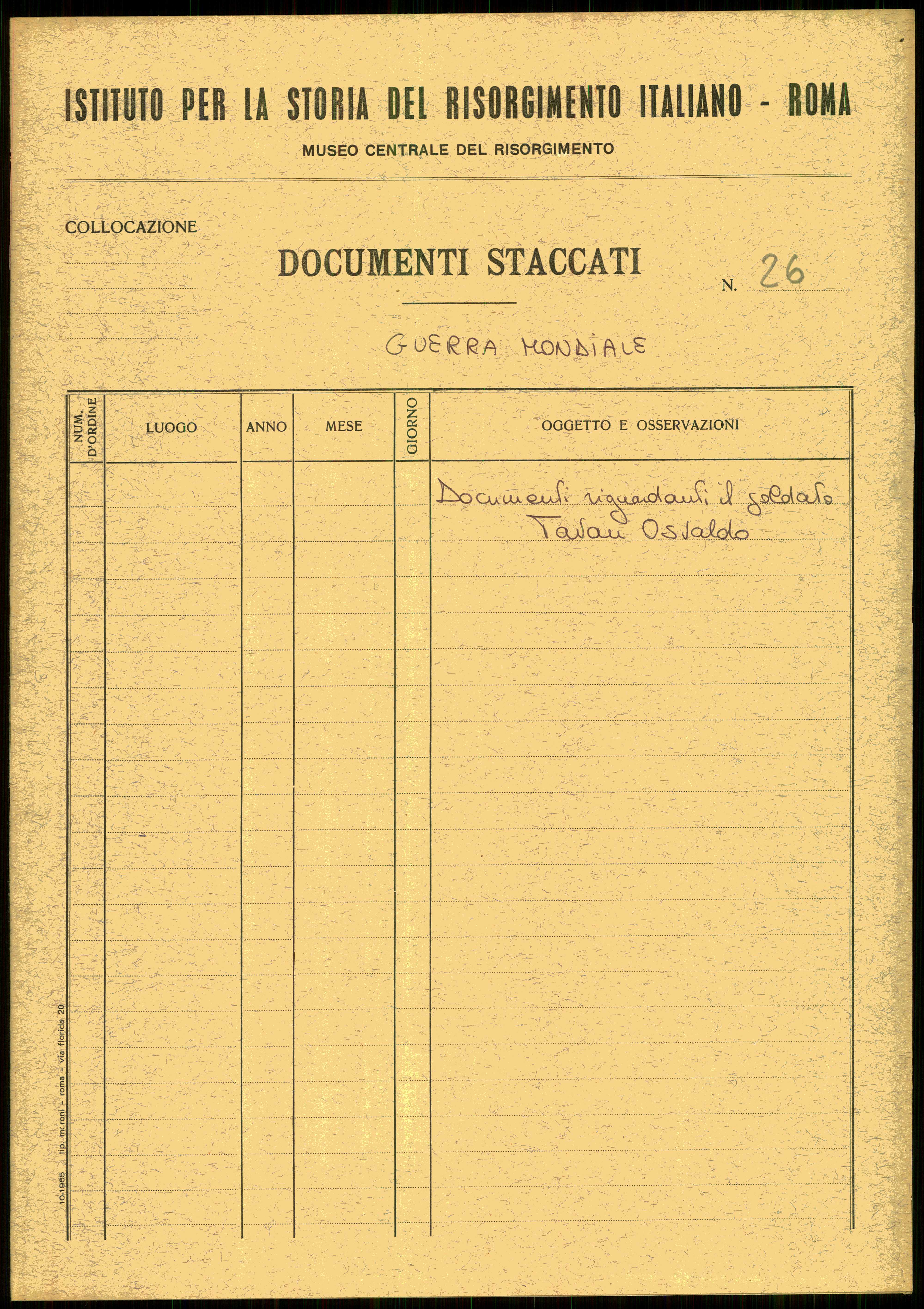 Istituto per la Storia del Risorgimento Italian.../Fondo caduti prima guerra mondiale/Tassi Ciro - Tegani Raffaello/Tavan Osvaldo, Andreis