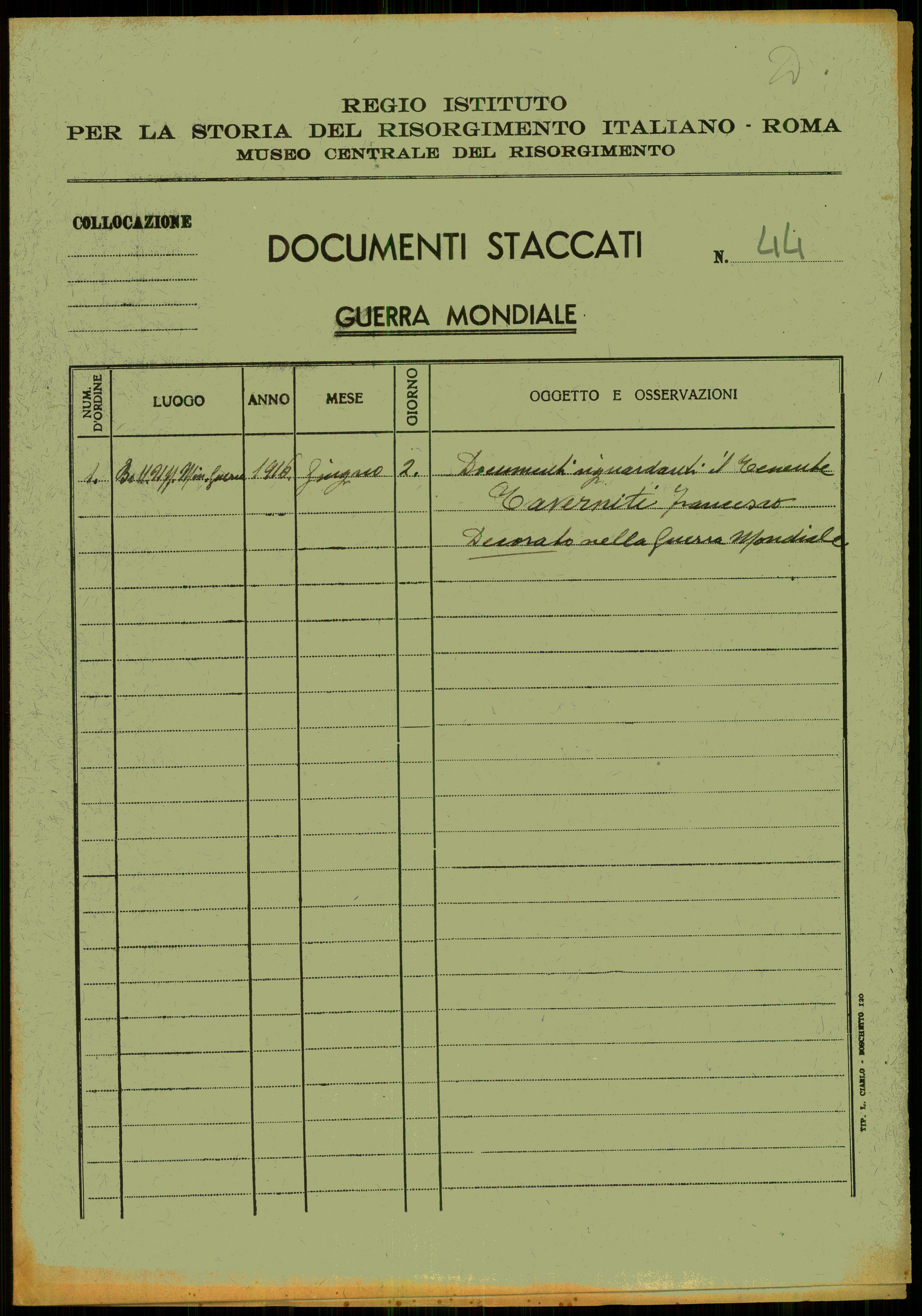 Istituto per la Storia del Risorgimento Italian.../Fondo caduti prima guerra mondiale/Tassi Ciro - Tegani Raffaello/Taverniti Francesco, Reggio Calabria