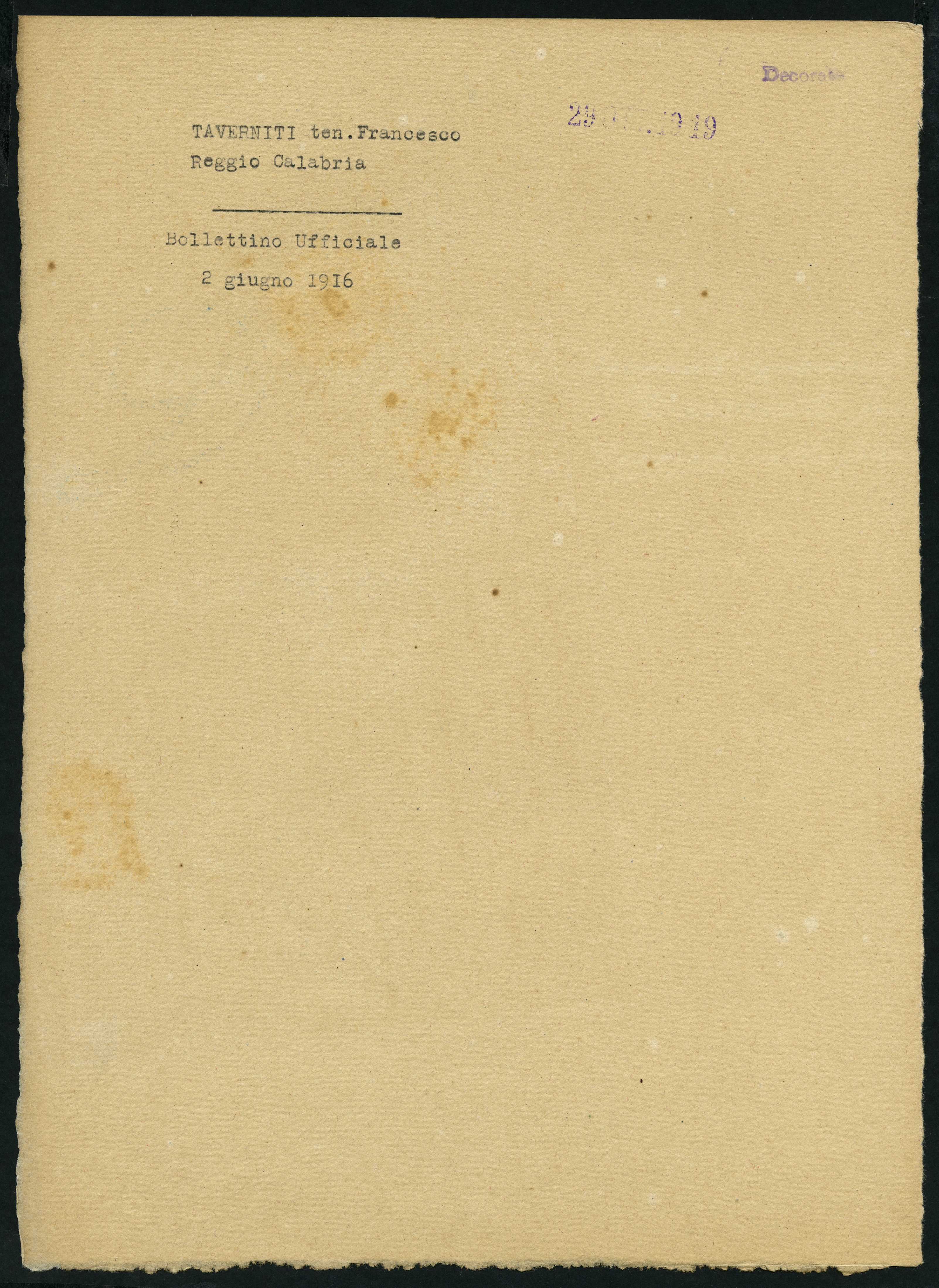 Istituto per la Storia del Risorgimento Italian.../Fondo caduti prima guerra mondiale/Tassi Ciro - Tegani Raffaello/Taverniti Francesco, Reggio Calabria