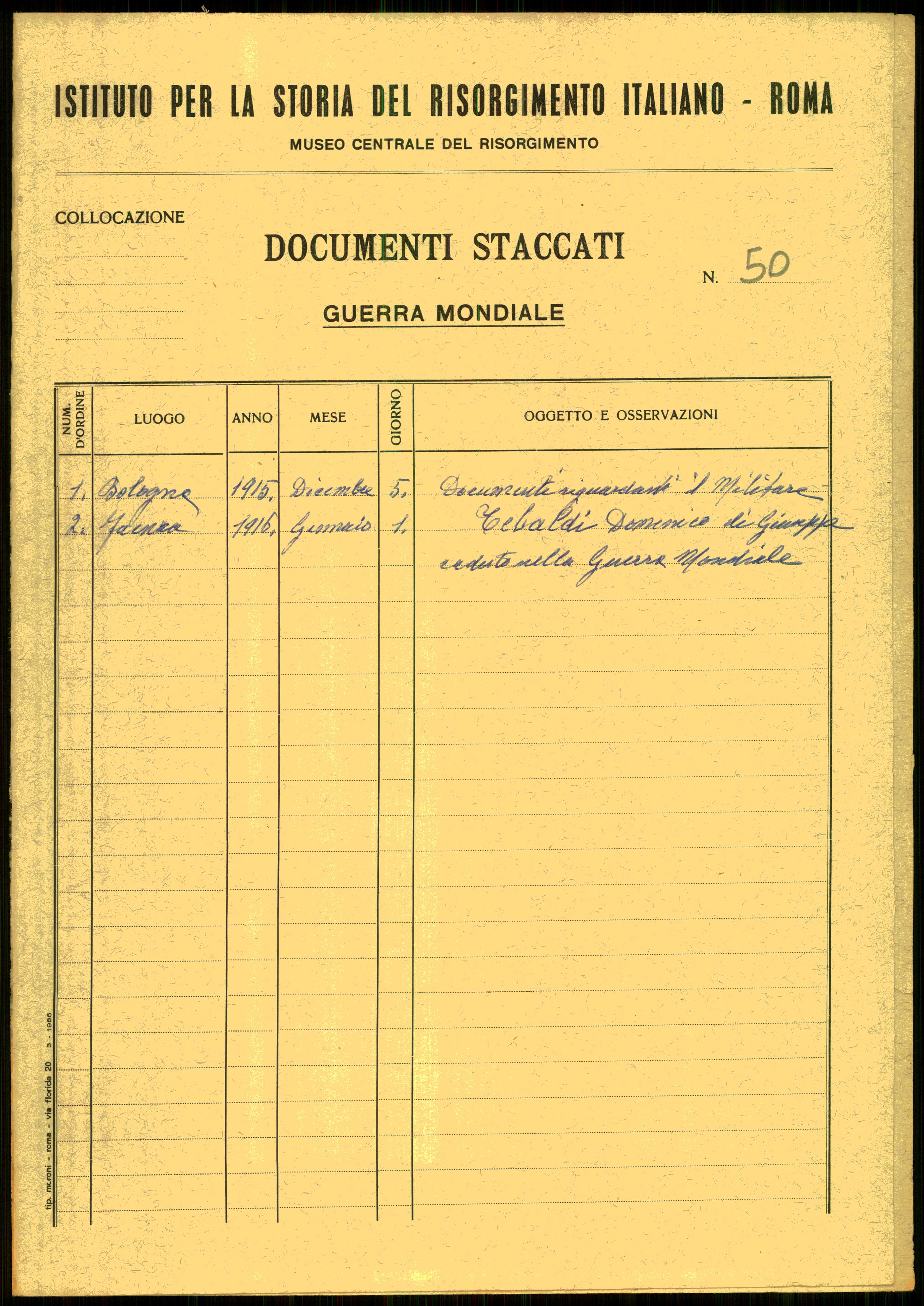 Istituto per la Storia del Risorgimento Italian.../Fondo caduti prima guerra mondiale/Tassi Ciro - Tegani Raffaello/Tebaldi Domenico, Faenza (Ravenna)