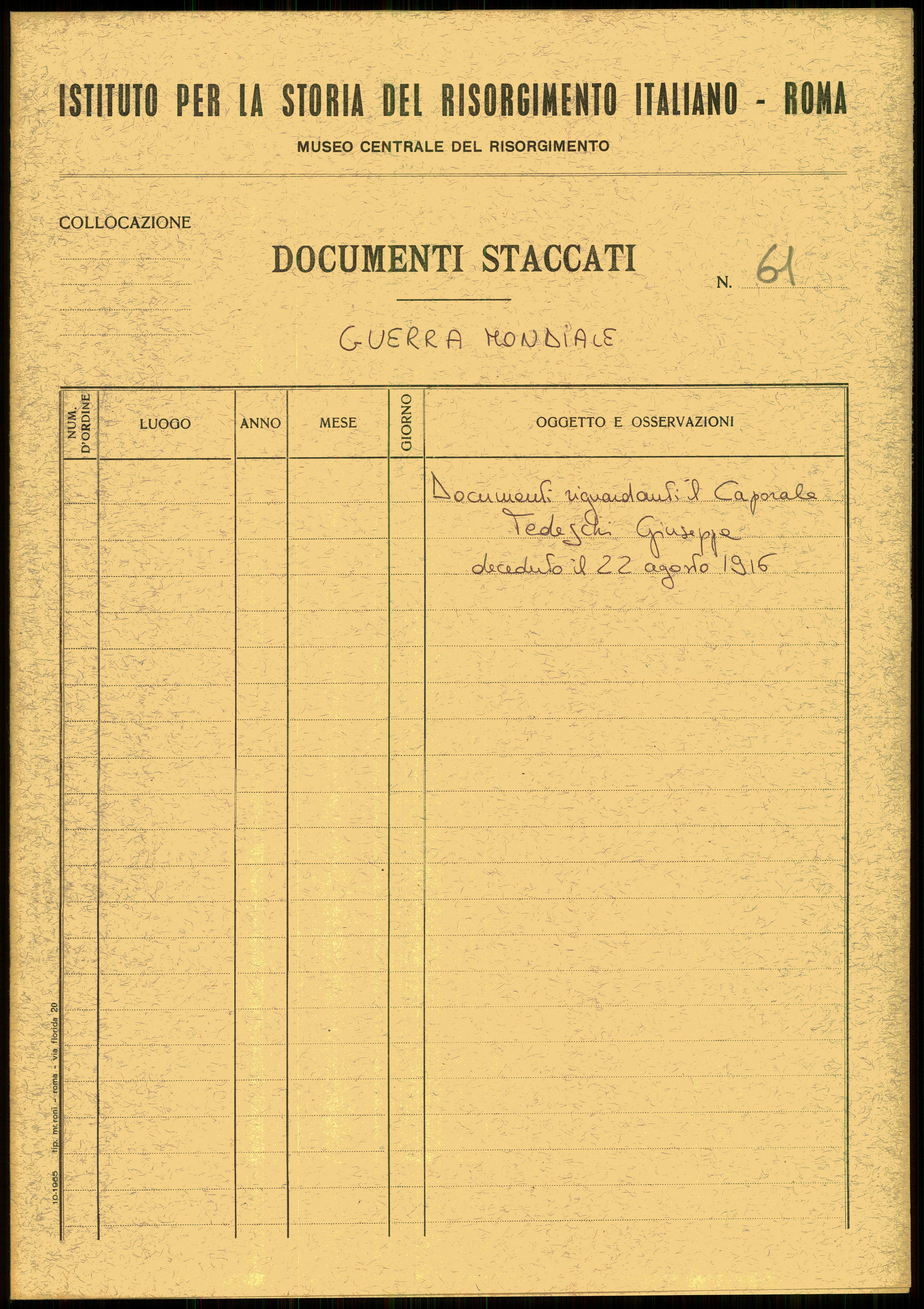 Istituto per la Storia del Risorgimento Italian.../Fondo caduti prima guerra mondiale/Tassi Ciro - Tegani Raffaello/Tedeschi Giuseppe, Genova