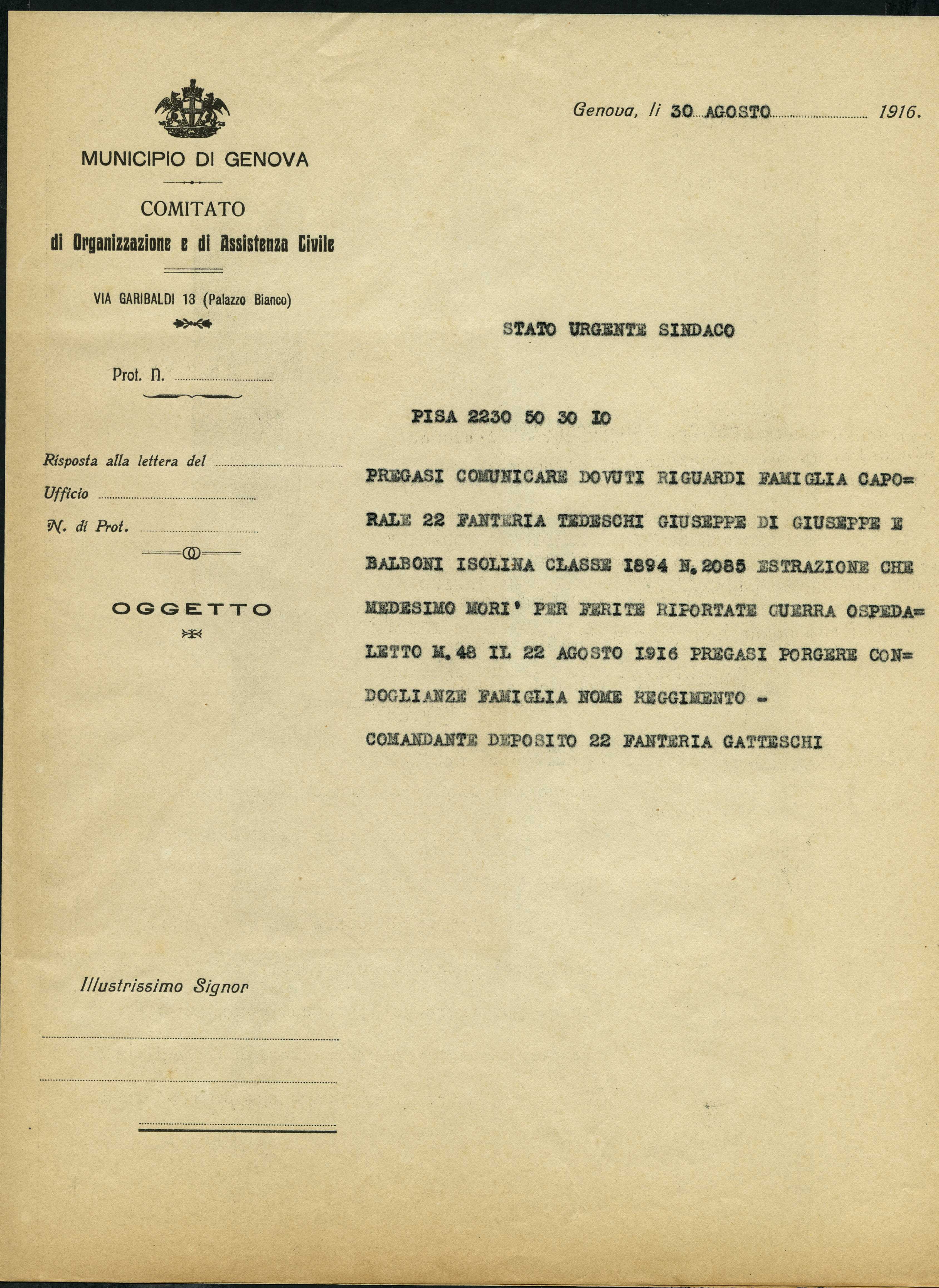 Tedeschi Giuseppe, Genova