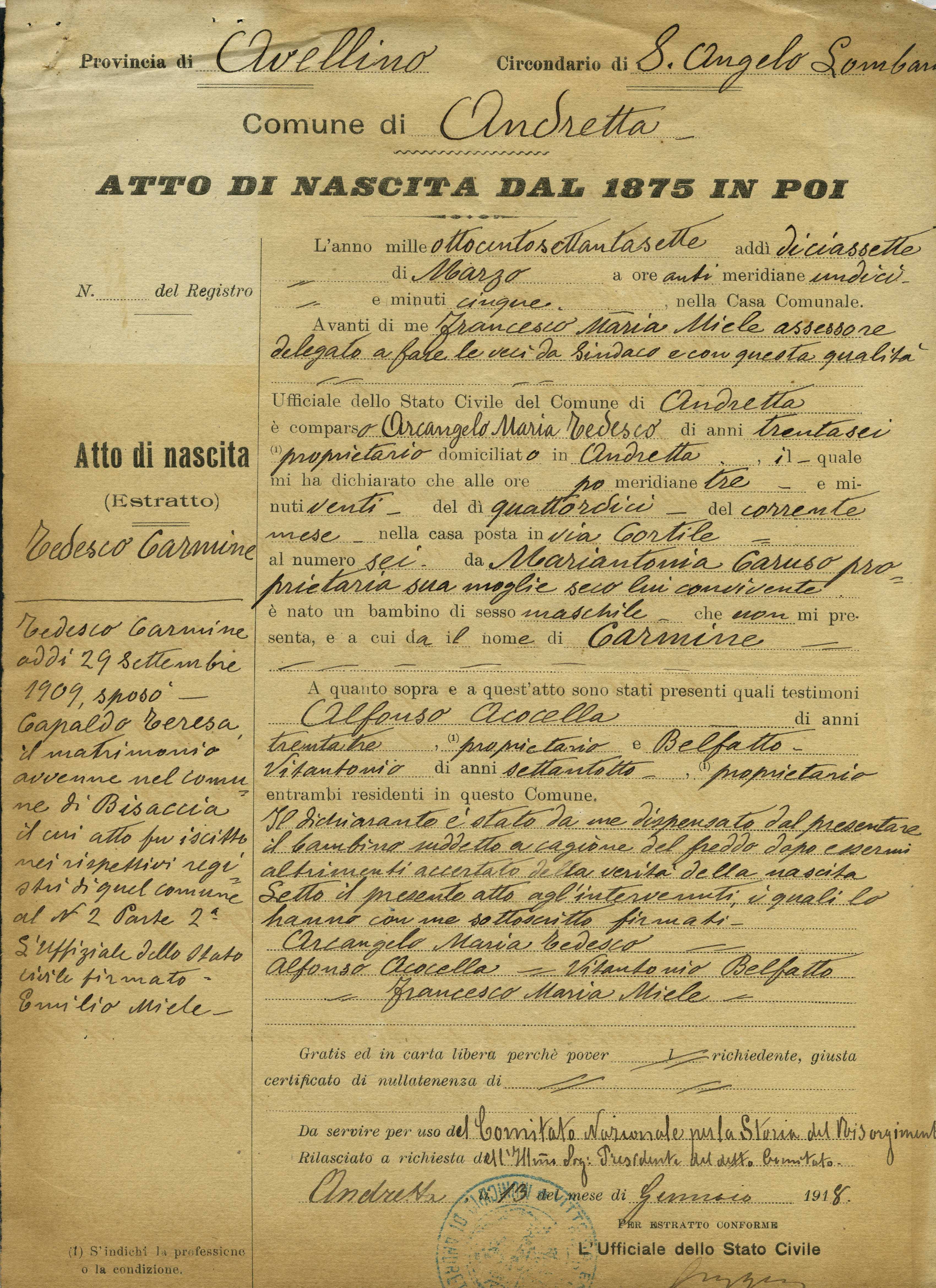 Istituto per la Storia del Risorgimento Italian.../Fondo caduti prima guerra mondiale/Tassi Ciro - Tegani Raffaello/Tedesco Carmine, Andretta (Avellino)