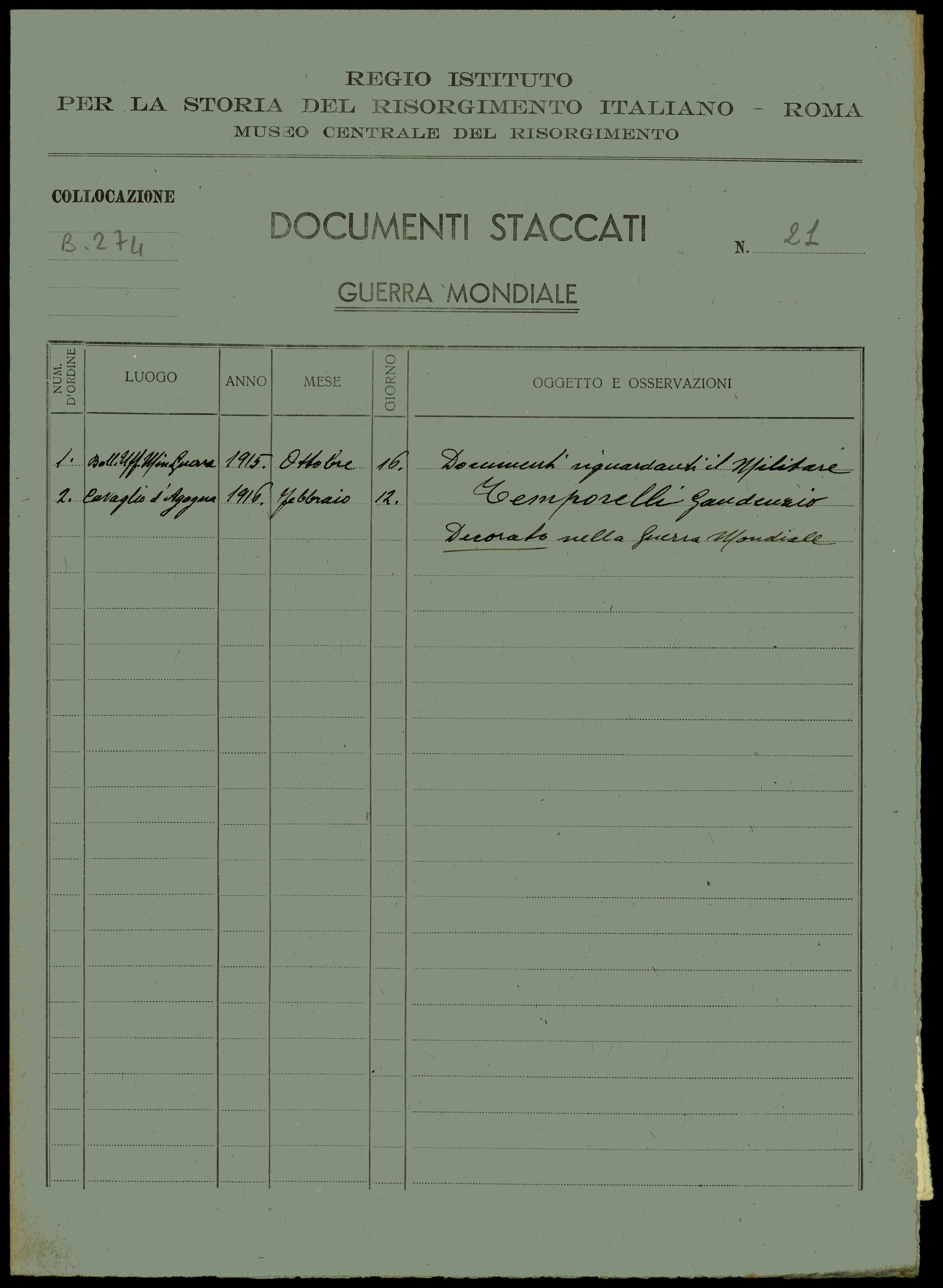 | Percorso: Istituto per la Storia del Risorgimento Italian.../Fondo caduti prima guerra mondiale/Tego Arturo - Terranova Ignazio/Temporelli Gaudenzio, Cavaglio d'Agogna (Novara) | |||||||||||