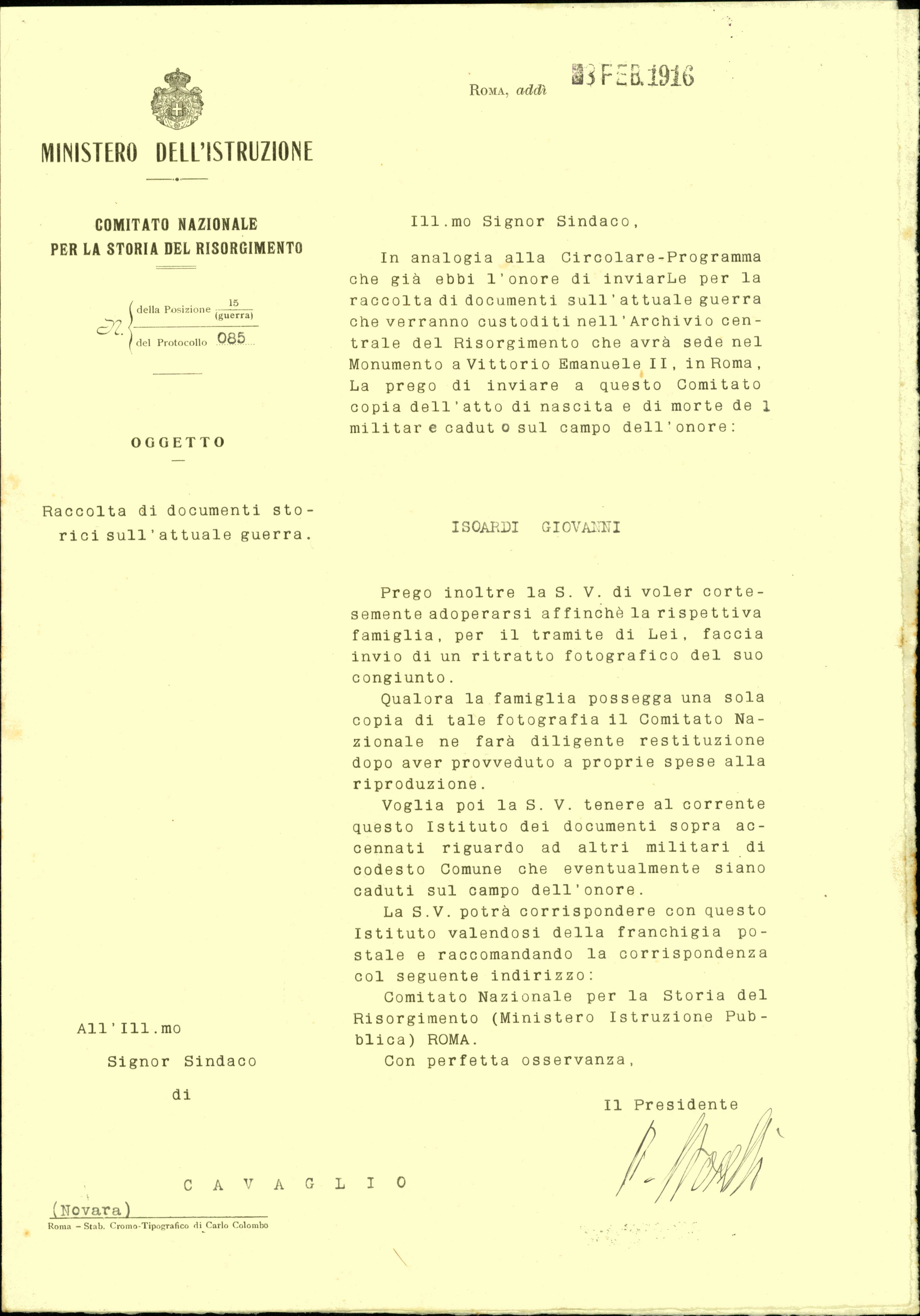 | Percorso: Istituto per la Storia del Risorgimento Italian.../Fondo caduti prima guerra mondiale/Tego Arturo - Terranova Ignazio/Temporelli Gaudenzio, Cavaglio d'Agogna (Novara) | |||||||||||