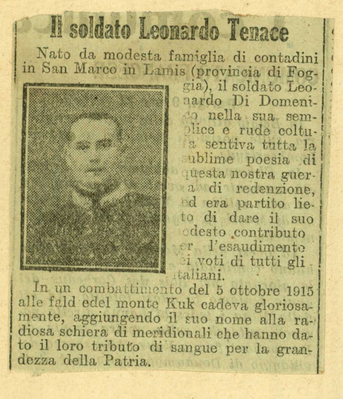Percorso: Istituto per la Storia del Risorgimento Italian.../Fondo caduti prima guerra mondiale/Tego Arturo - Terranova Ignazio/Tenace Leonardo, San Marco in Lamis (Foggia)