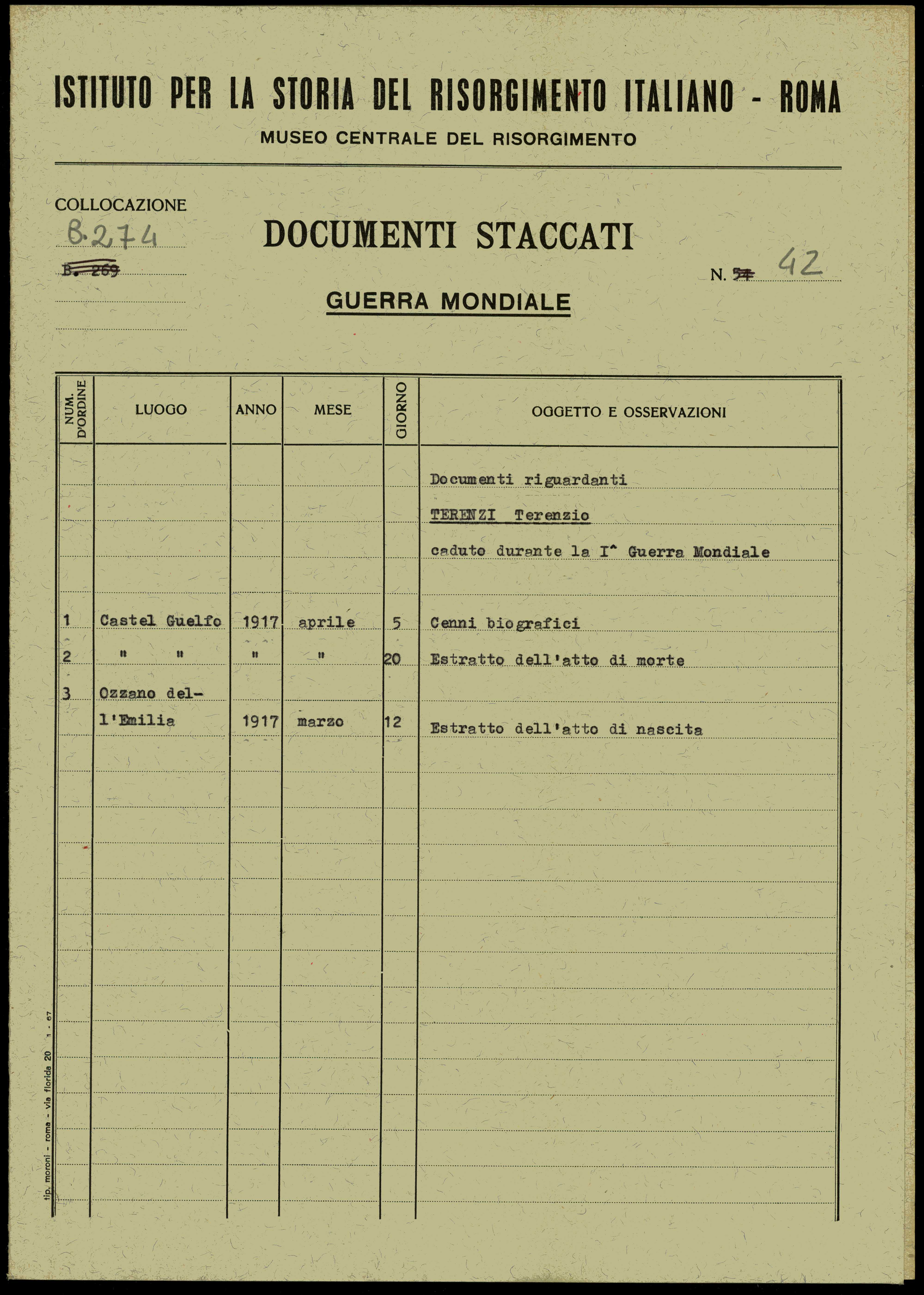 3.1.1.2. Segnatura corrente:   (Caduti 274/42) 42 (1)